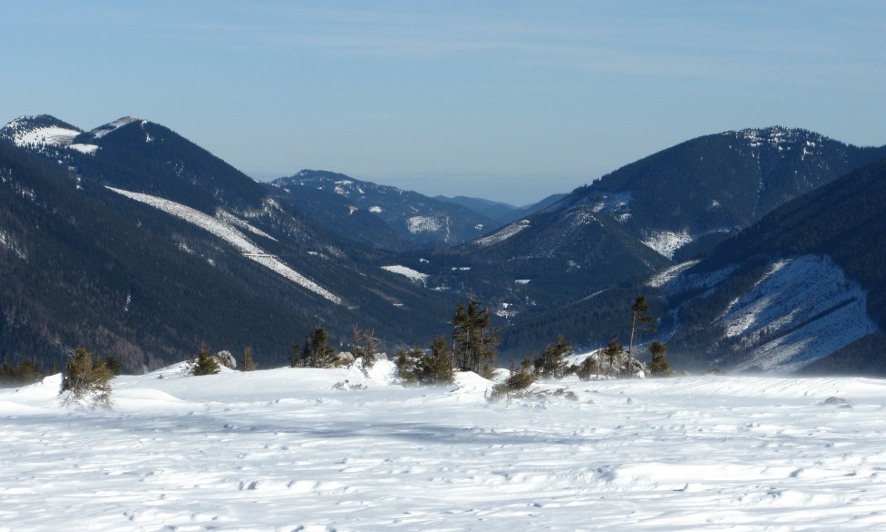 Ein Technikhäuschen nahe der Sendemasten bot etwas Schutz vor dem starken Wind. Wir gingen denselben Weg zurück, wie wir aufgestiegen waren. Der weiche Schnee war dabei kein Nachteil. Im steileren Bereich wars ein gutes Gleichgewichtstraining. Der steile Hang war kein Problem für mich, auch wenn ich es ziemlich in den Knien und Oberschenkeln spürte. Am Sattel wars dann ziemlich mild, aber mit dem Wind wieder auszuhalten. Insgesamt eine typische Spätwintertour, durch den weichen, nassen Schnee eine der anstrengsten Touren, die ich überhaupt gemacht hatte. Wir kehrten anschließend im Freinerhof bei Kürbiskernschnitzel ein. Insgesamt 15km und 500hm.