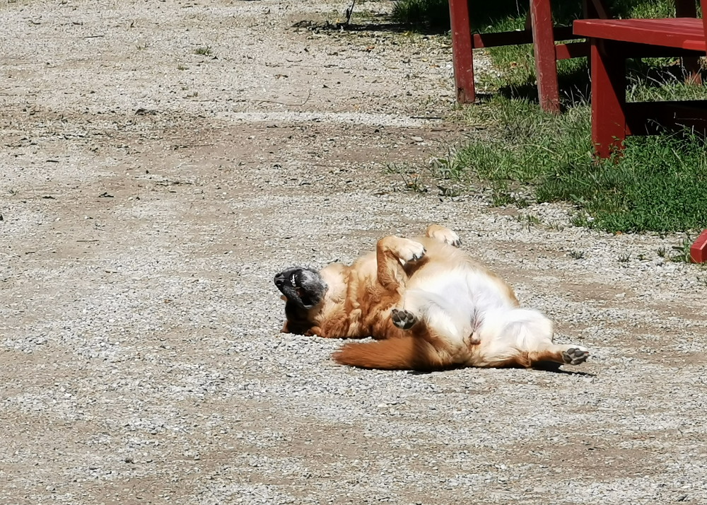 Als ich ankomme, sieht der Gastgarten wie verlassen aus. Sie hat aber täglich geöffnet. Dann kam der Hund, den ich noch von meiner Herbstwanderung am 25. Oktober 2019 kannte. Von den vier Katzen war dafür nur eine zu sehen.