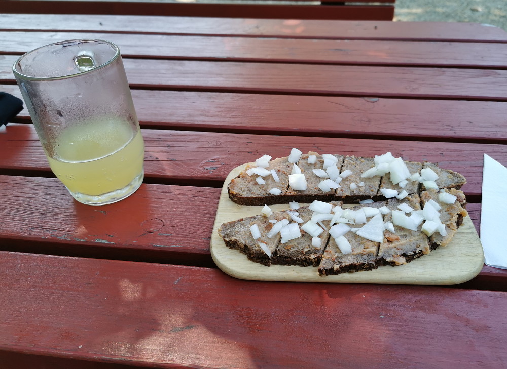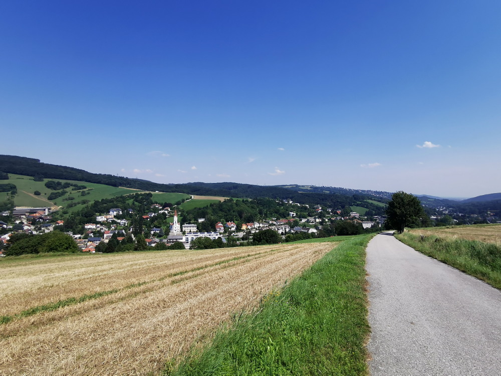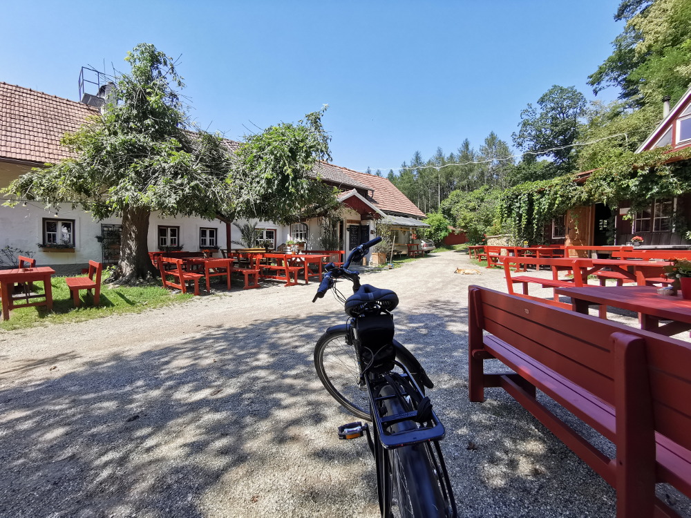 Ich hatte den Gastgarten gut eine halbe Stunde für mich alleine, dann kam ein Einheimischer mit seinem Freund und wies ihn in die Speisekarte ein: „Aber was ich heute nie nehmen würde, wäre ein Grammelschmalzbrot, dafür ist es viel zu heiß.“ Ich schmunzelte, zumal er dann das Blunzngröstl nahm, was sicher kaum weniger im Magen lag. Für mich wars der richtige Energieschub.