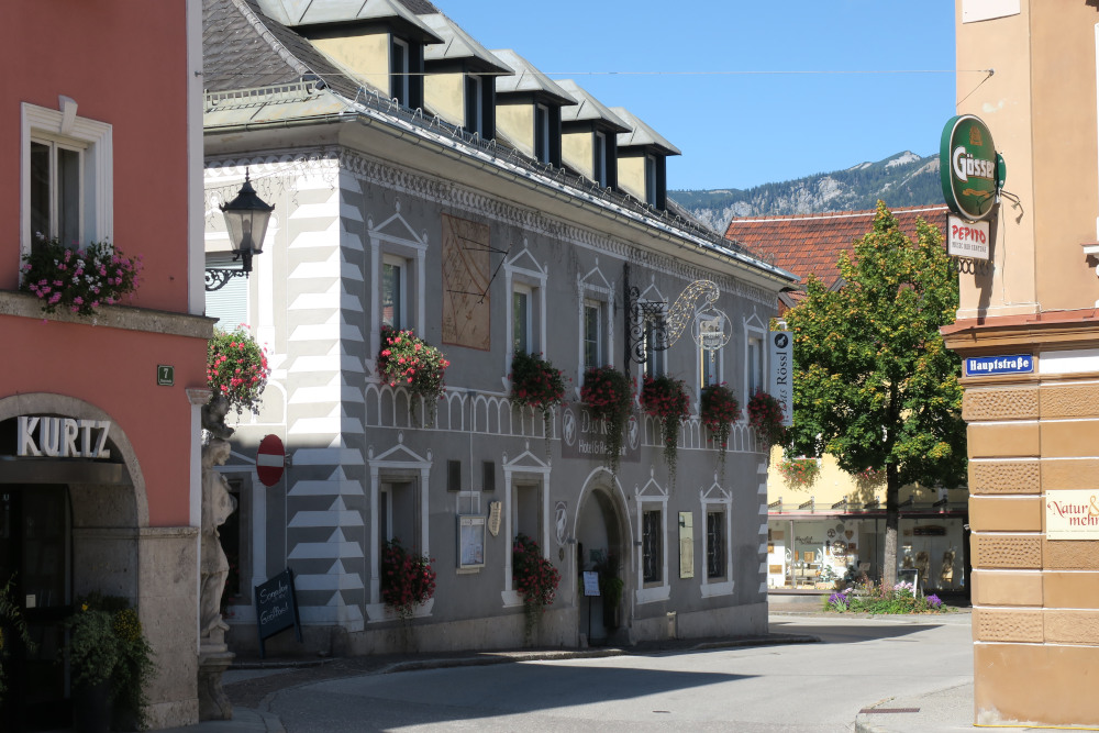 Das Gasthaus „Schwarzes Rössl“ nahe dem Zentrum besteht bereits seit dem 15. Jahrhundert. Ich konnte zumindest einmal beim Frühstück einen Blick in das beeindruckende Kellergewölbe – ein großer schwarzer Schlund – werfen. Die Bushaltestelle bei der Kirche ist keine drei Minuten entfernt und liefert Verbindungen Richtung Steyrling, Hinterstoder, Wurzeralm und Hengstpass (Rufbus). Das Gasthaus selbst liegt etwa 700m vom Bahnhof entfernt, also in Gehdistanz auch bei öffentlicher Anreise wie von mir.