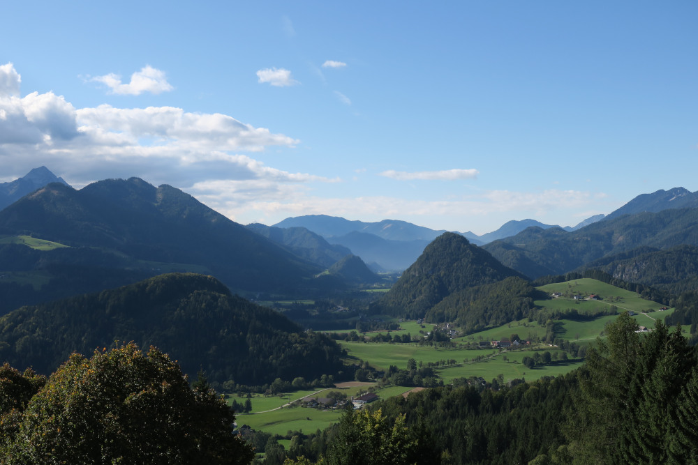 Am Samstag, Anreisetag, konterkarikierte das Wetter meine Pläne mit föhnigem Südwind und milden 19°C bei einigen Sonnenstunden. Ich musste bis 14 Uhr auf den Check-in warten und spazierte daher durch den Ort und danach noch auf den Wurbauerkogel – so wie im Vorjahr im Frühsommer, wo es ebenfalls meine erste „Tour“ am Anreisetag war. Beim Besuch des Panoramaturms konnte ich gleich das erste Mal meine Pyhrn-Priel-AktivCard nutzen.
