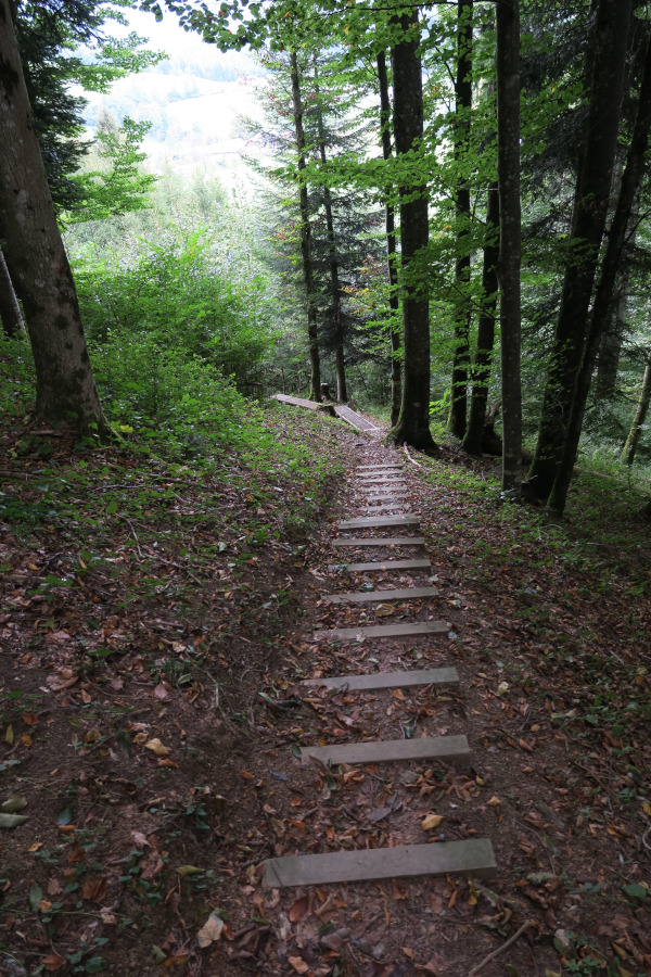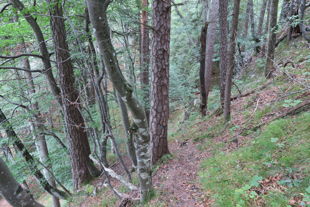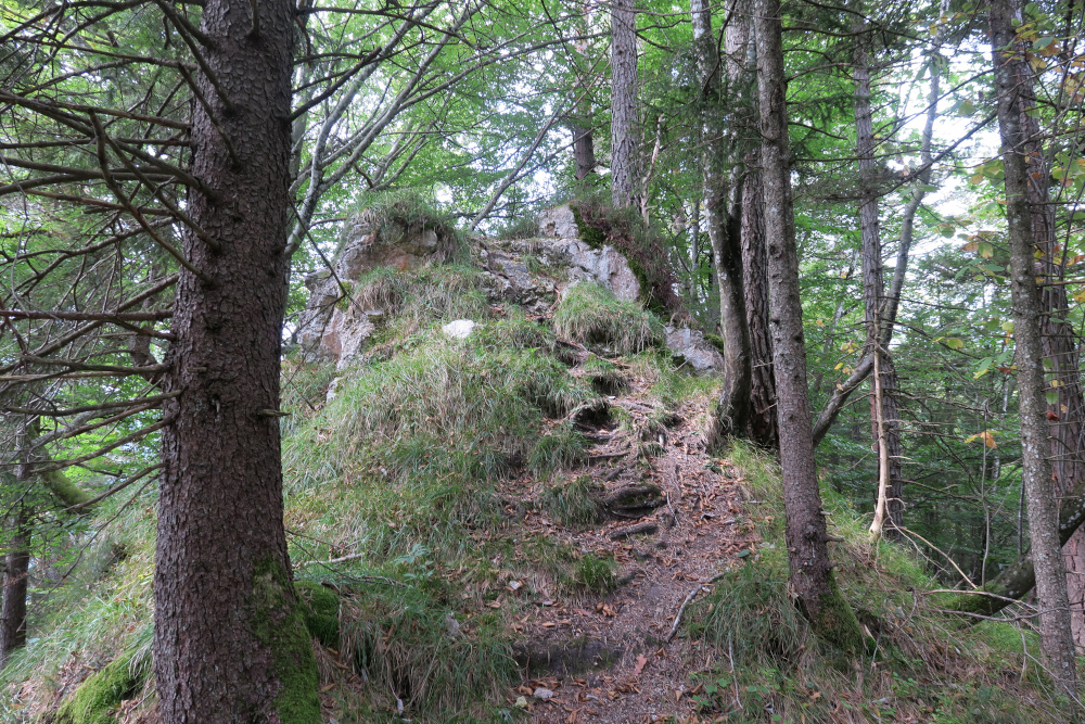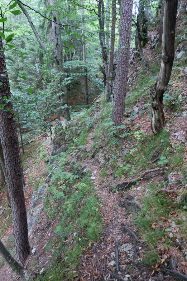 Die „Schlüsselstelle“ waren ein paar Meter mit schmalem Steig und abschüssigem, felsdurchsetztem Hang im Wald. Bei ausgeprägter Nässe und Glätte wahrscheinlich unangenehm zu begehen.