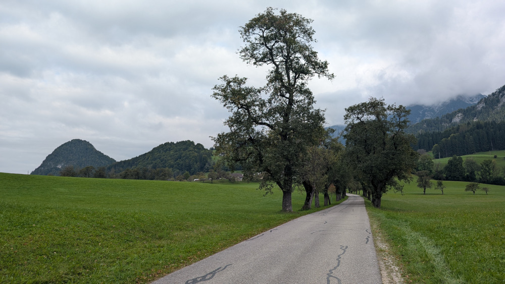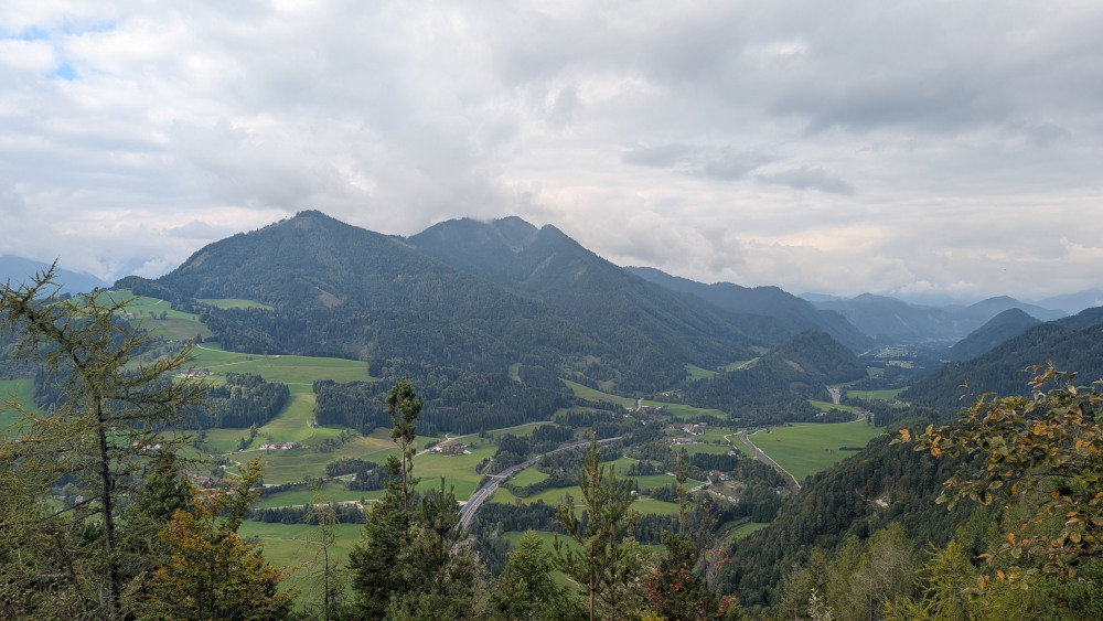 Dazwischen hatte man nette Ausblicke zu den weiteren scharfen Erhebungen im Tal, hier gegenüber der Gsperrberg.