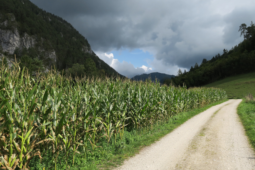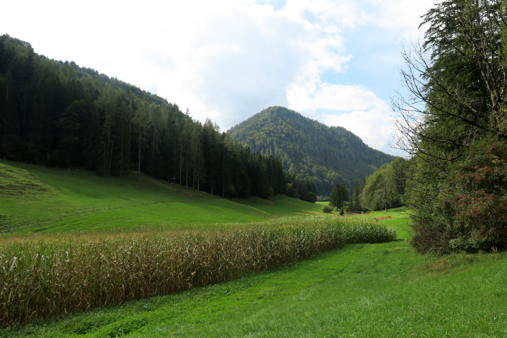 Womit ich aber nicht gerechnet hatte, dass das vermeintlich naturbelassene Teil ausgedehnt beweidet und ackerbewirtschaftet wurde. Ein mehrere hundert Meter langes Maisfeld befand sich in der Talmitte.