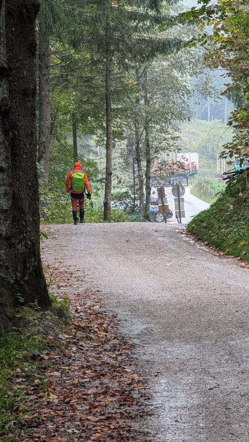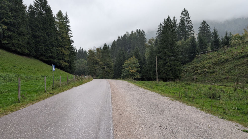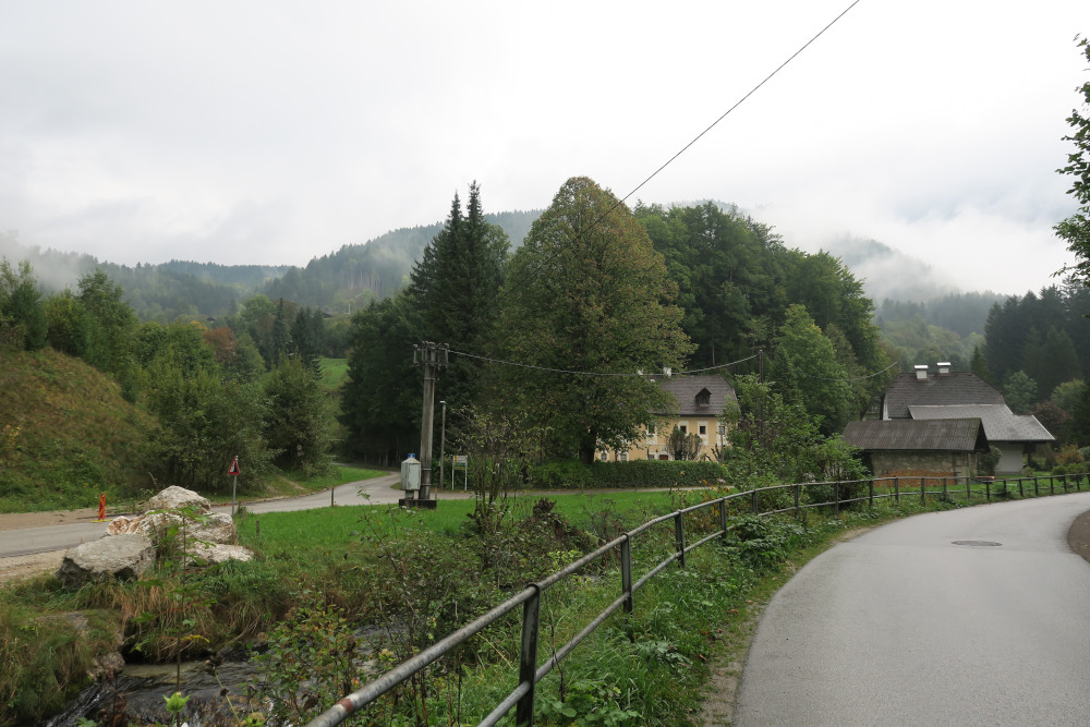 Ich nahm den späteren Bus und startete um 9.27 vom Stiftsplatz in Spital am Pyhrn. Im Gegensatz zur Anfahrt mit dem Zug sparte ich mir damit ein paar hundert Meter Wegstrecke. Beim Weggehen regnete es nur leicht vor sich hin.