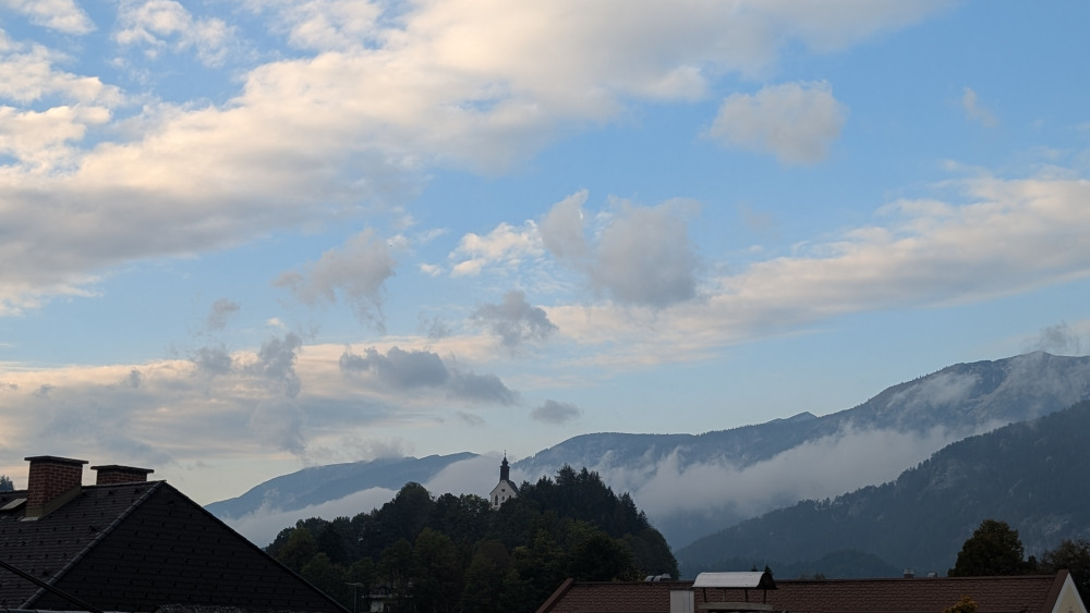 Wir kehrten erneut im Gasthaus Kemmetmüller ein, dieses Mal aber drinnen, und sinnierten über das Tourenziel am Folgetag. Denn eine Luftmassengrenze sollte ausgerechnet in der Pyhrn-Eisenwurzen-Region für Dauerregen sorgen. Währenddessen klarte der Himmel auf und der Tag ging trocken und frisch zu Ende.