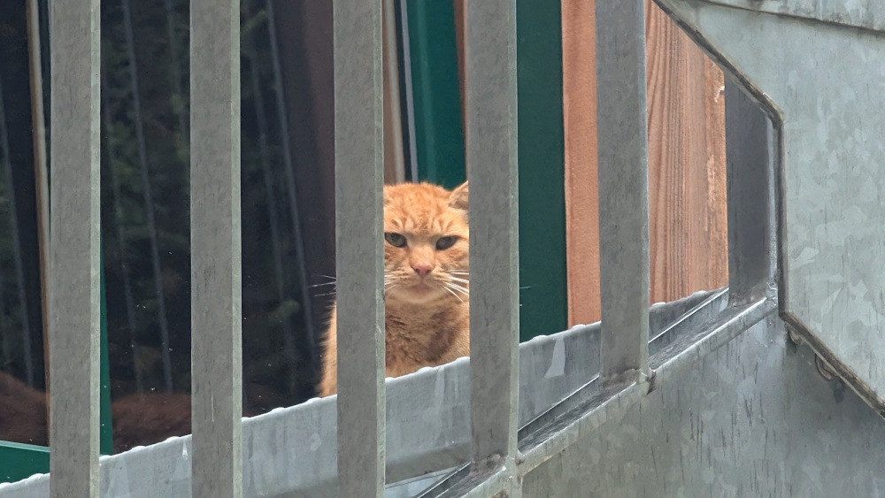 Ab dem Graben verstärkte sich der Regen wieder und ich war schließlich sehr froh, als die Bosruckhütte erneut in Sichtweite war. Auch der Kater saß noch draußen unter dem Stiegenvorsprung und schaute griesgrämig.
