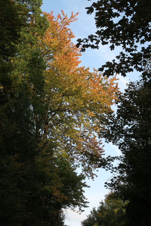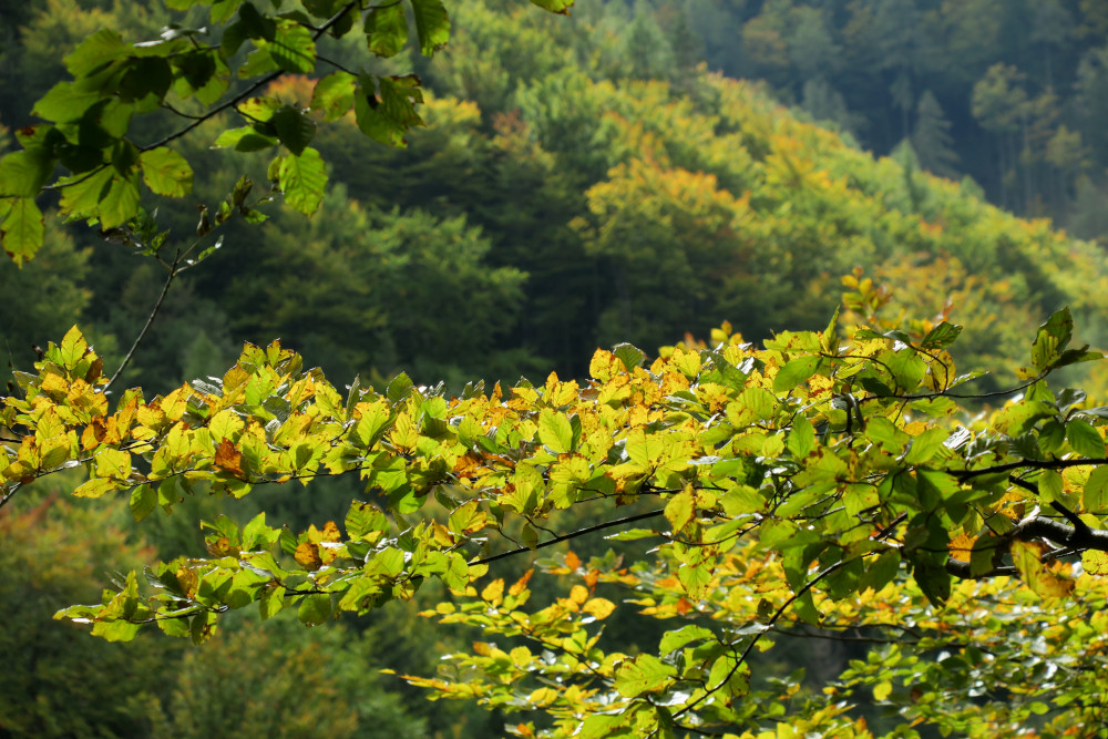 Plötzlich sahen wir rechts vom Weg über der Nordkante des Kamms einen Greifvogel mit riesiger Flügelspannweite. Er setzte sich dann auf einem Ast nieder, aber ich reagierte zu langsam, um nach der Kamera zu zücken. Es könnte ein Steinadler gewesen sein, gefühlt war er für uns beide zu groß für einen Bussard. Über eine Steinadler-Population in der Gegend war uns allerdings nichts bekannt.