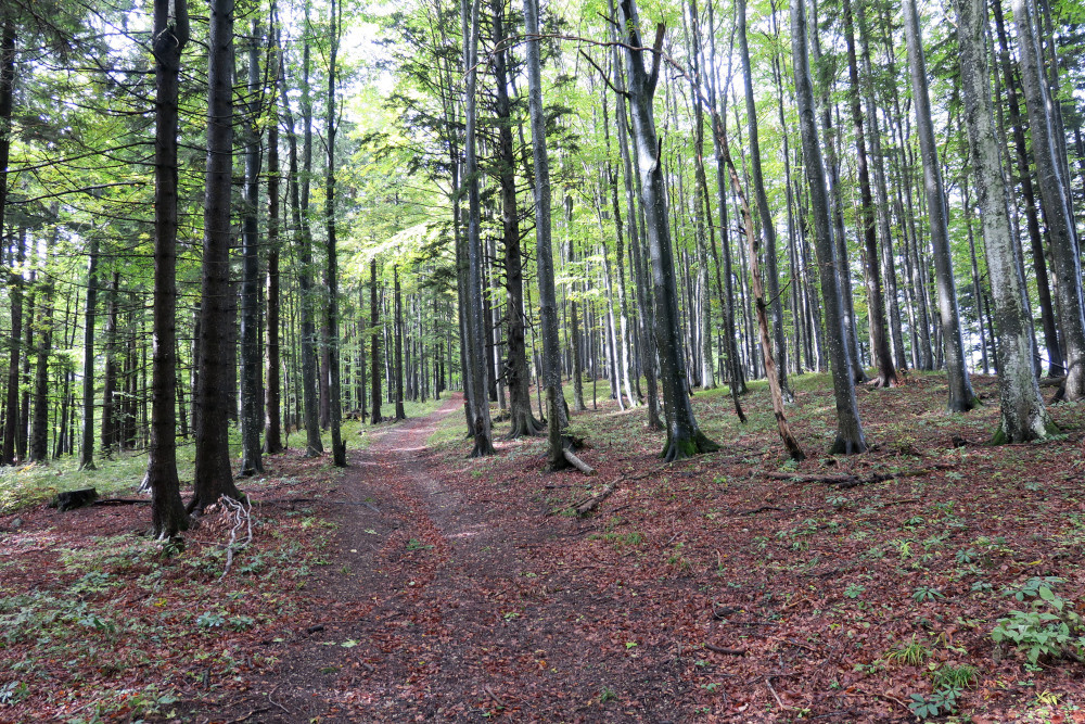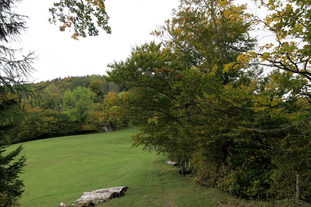 Wir kürzten weglos die lange Forstwegkehre über den Wiesenhang ab.