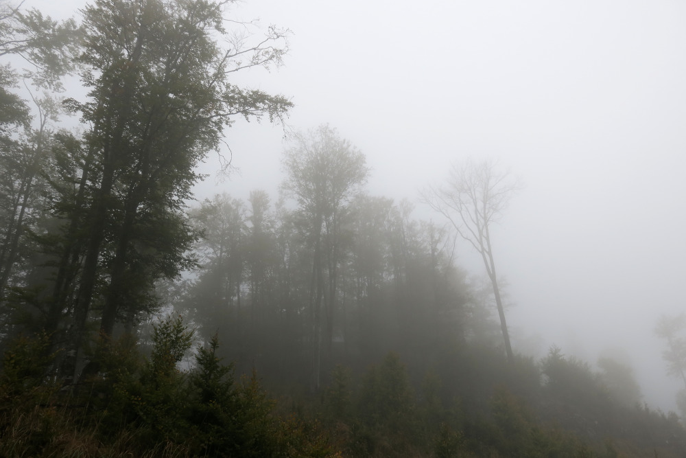 Auf den letzten Metern wurde der Nebel dichter und kurz vor der Hütte kam Wind auf. Richtig grauslich.