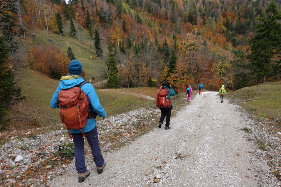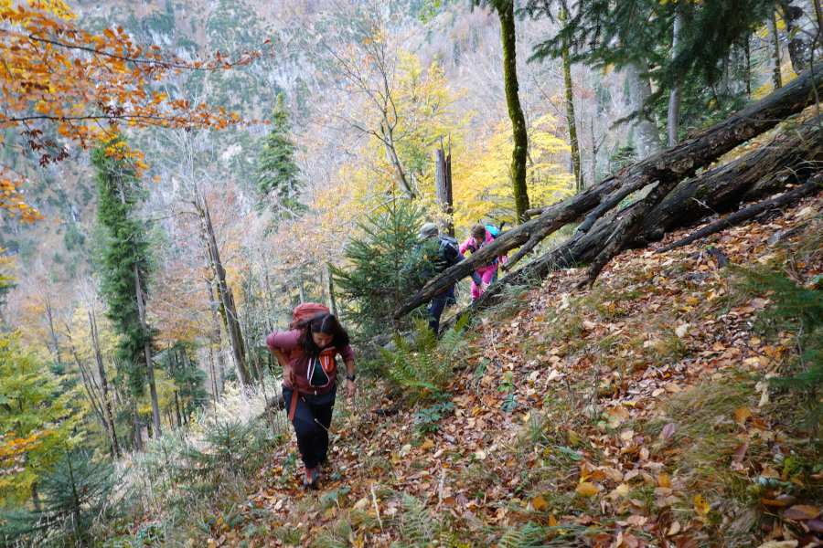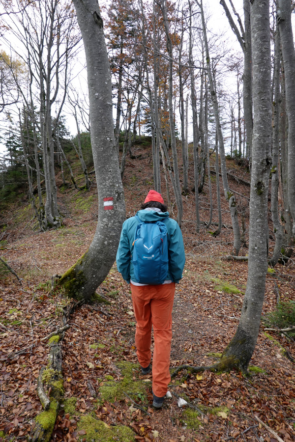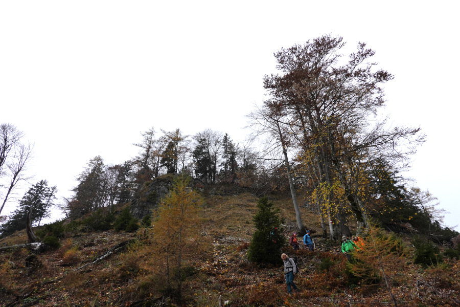 Kurz verloren den markierten Steig und stiegen ein paar Höhenmeter weglos den Hang hinauf. Oben hüpfte gerade eine Gams davon.