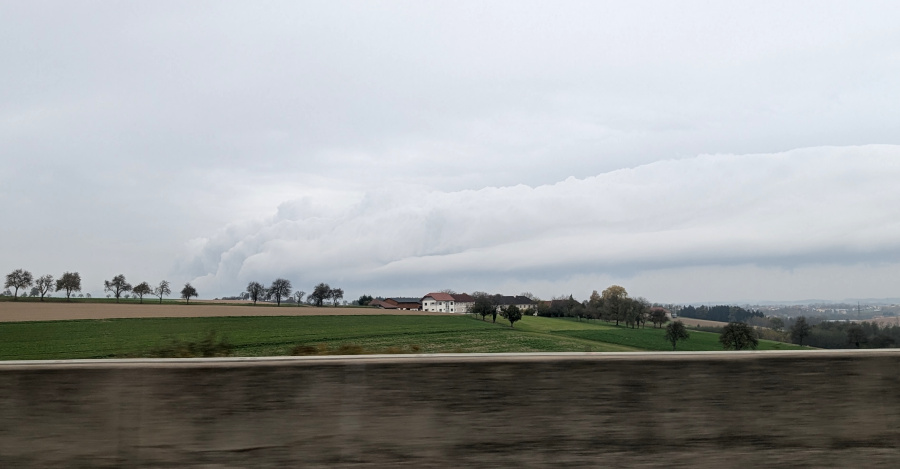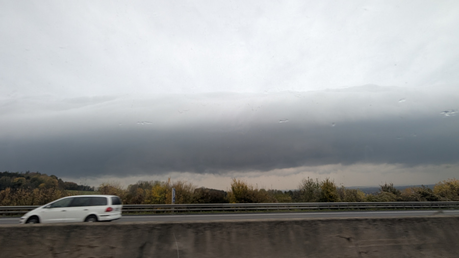 Plötzlich näherte sich vor uns eine weiße Wand. Ich hab davon leider kein scharfes Foto, aber mir war sofort klar, dass es sich um eine Böenwalze handeln musste, denn der Stratus war zu mächtig dafür.