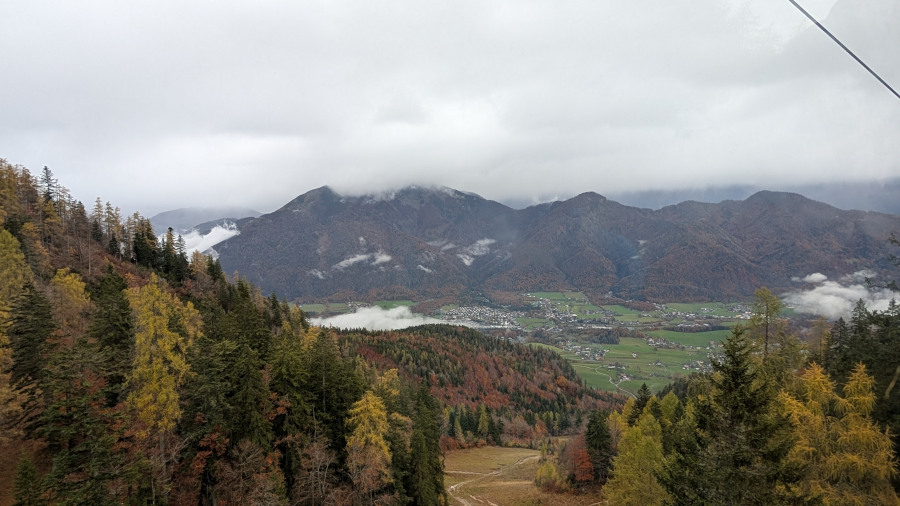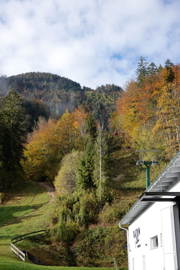 Die kürzeste Anreise des Wochenendes – wir mussten nur ein paar Meter von der Unterkunft gehen und standen schon vor der Talstation. Der Himmel strafte meinen Worten Lügen – es gab noch ein paar Sonnenstrahlen.