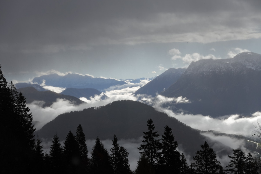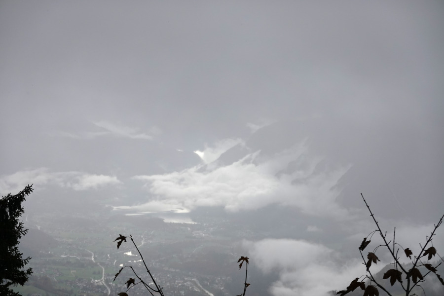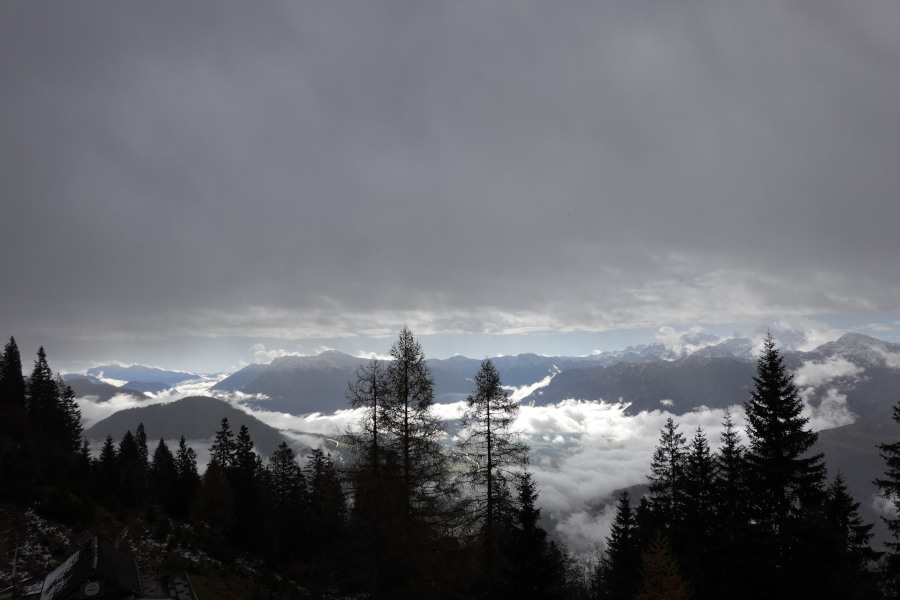 Der Sonnenschein hielt nicht lange. Schon bei der Bergfahrt trübte es mit Schauerwolken ein. Gegenüber am Leonsberg sank die Wolkenuntergrenze unter 1700m.