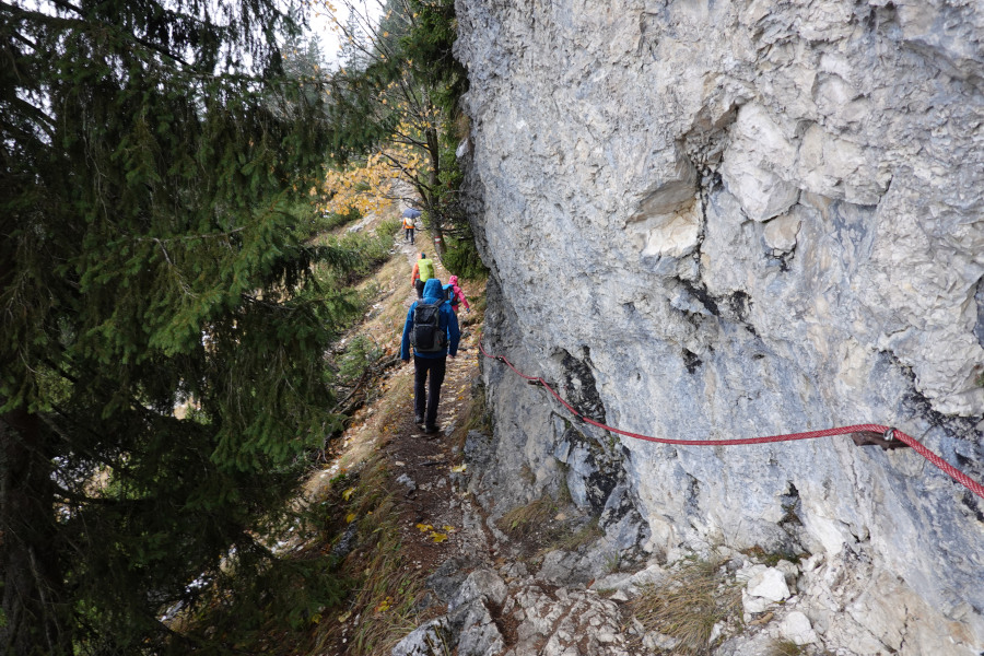 Beim Beginn des seilversicherten Abschnitts drehten wir um. Zuvor waren uns zwei Einheimische entgegengekommen, die uns warnten, dass das Seil vereist sei und man bei den Kletterstellen wegen dem Schnee aufpassen müsse. Ich kannte den Weiterweg noch von meiner Tour im Sommer 2017 – aus meinem damaligen Bericht: