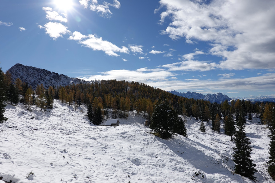 Nun kam auch noch die Sonne zum Vorschein und das ergab mit den gefärbten Lärchen tolle Kontraste.