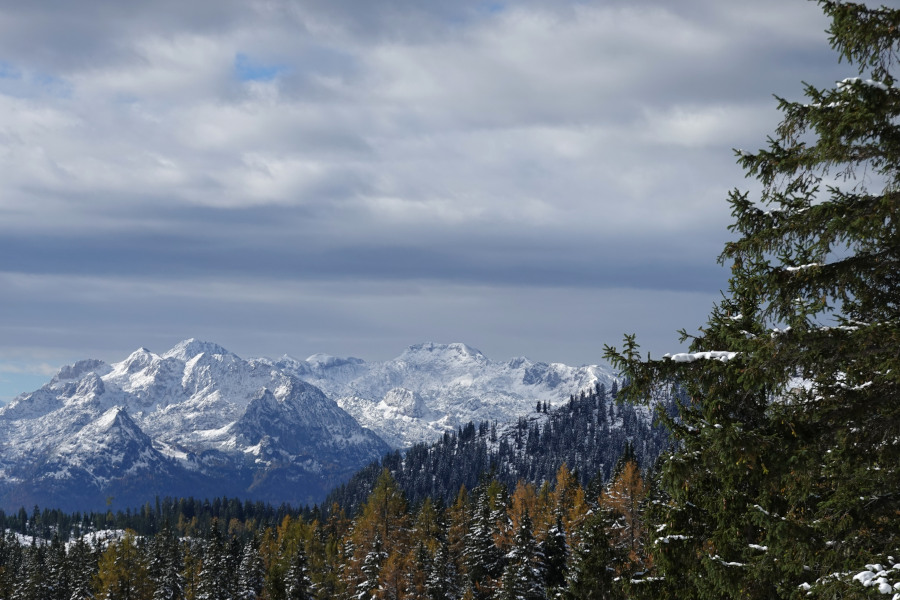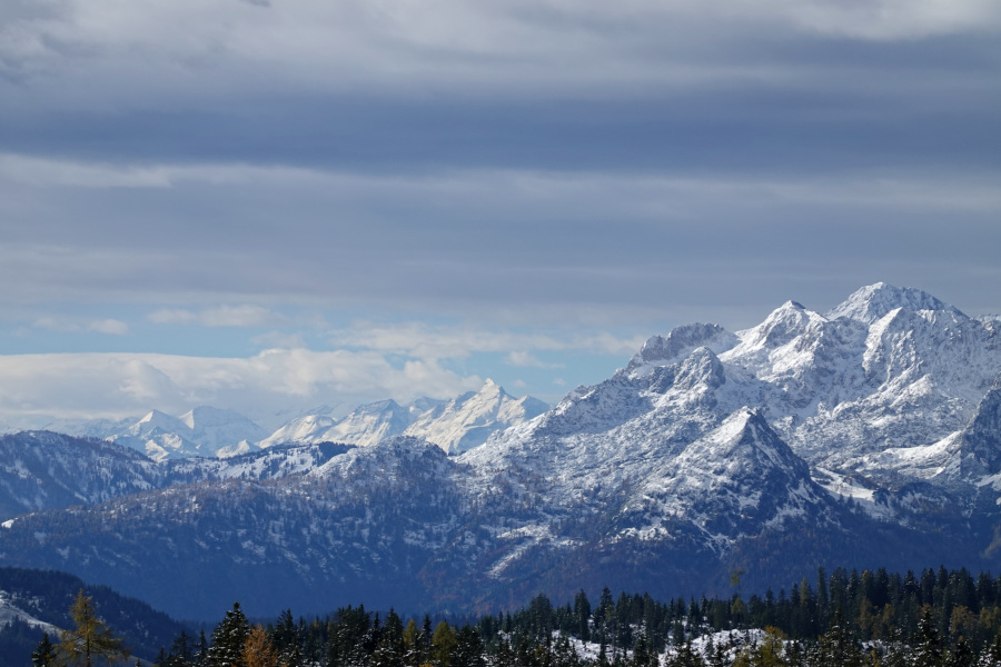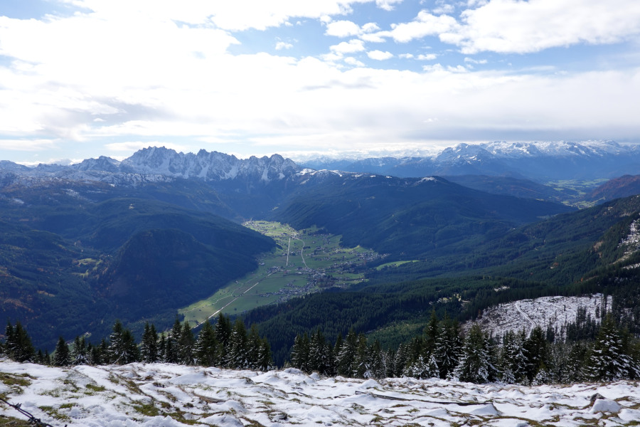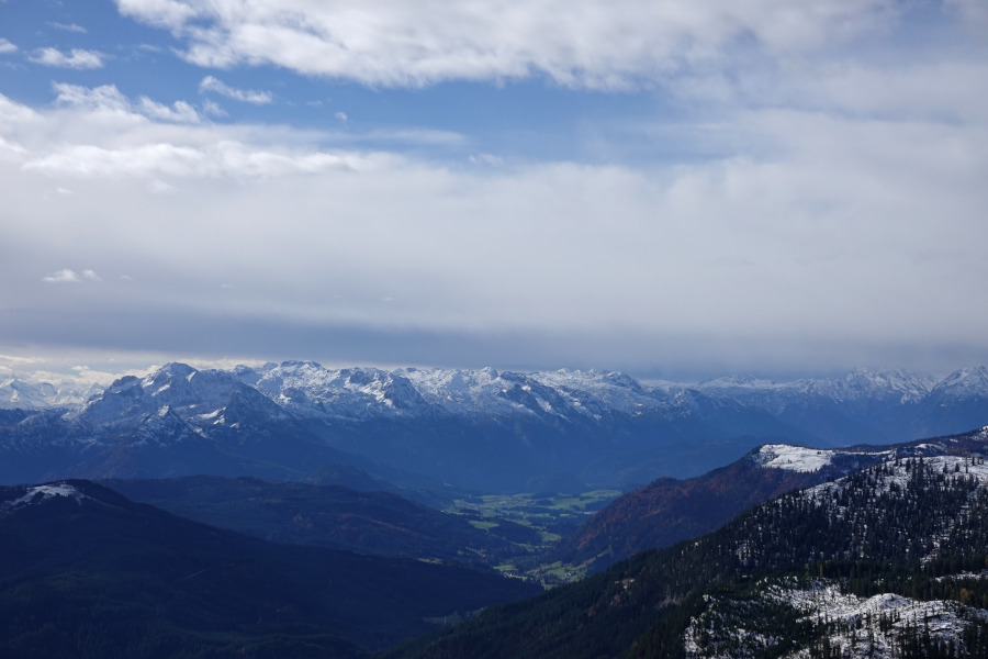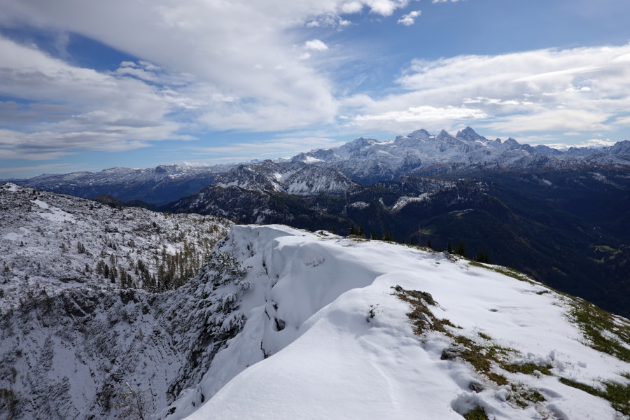 Am Gipfel öffnete sich auch der vollständige Blick zum Hohen Dachstein gegenüber, links der Niedere Dachstein.