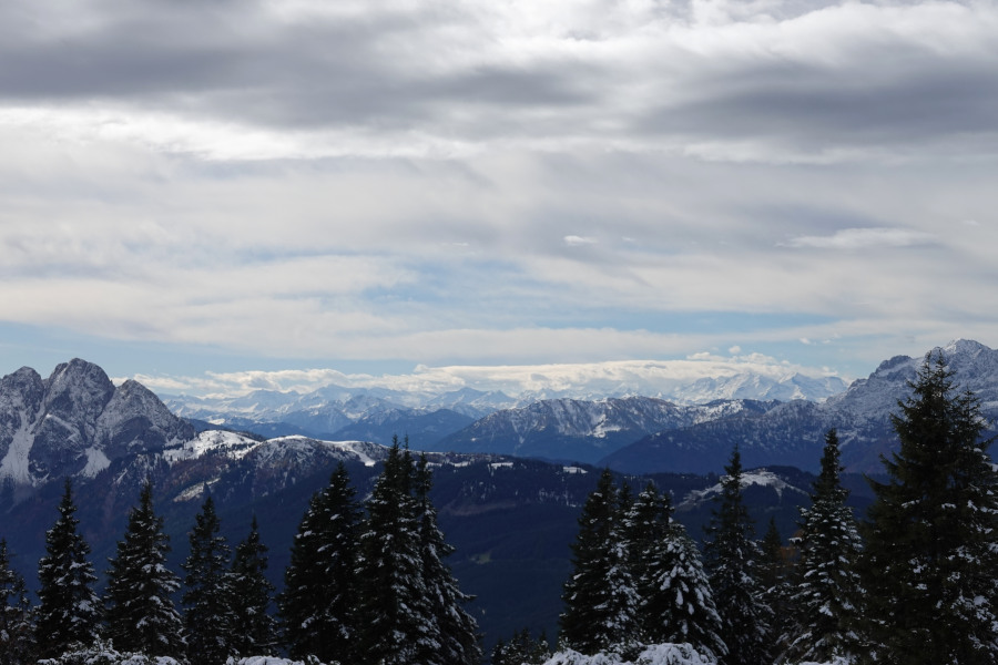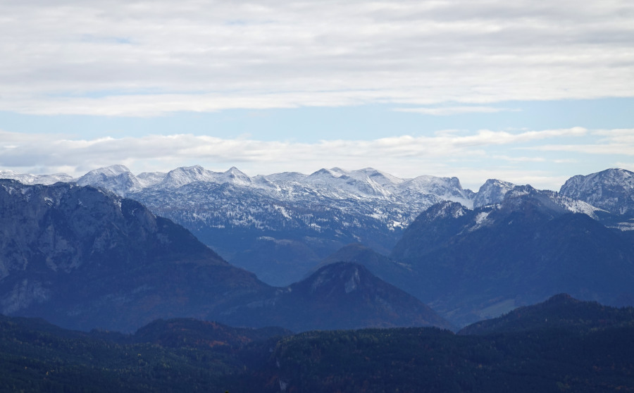 Hier mit Gosaukamm links, Hohe Tauern zentral und Tennengebirge rechts. Zugegeben hatte ich meine Probleme, mich mit den Himmelsrichtungen zu orientieren.