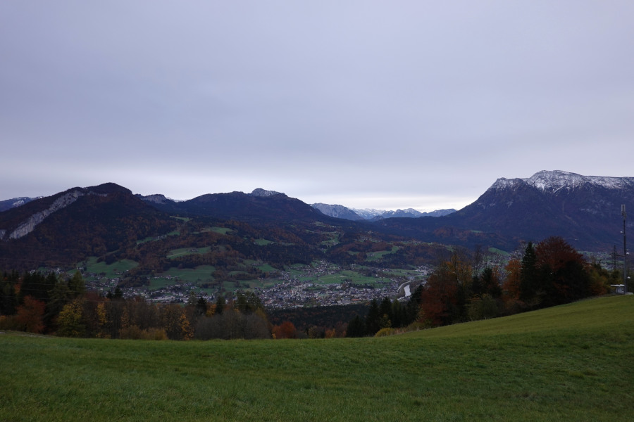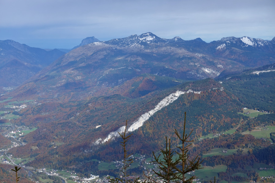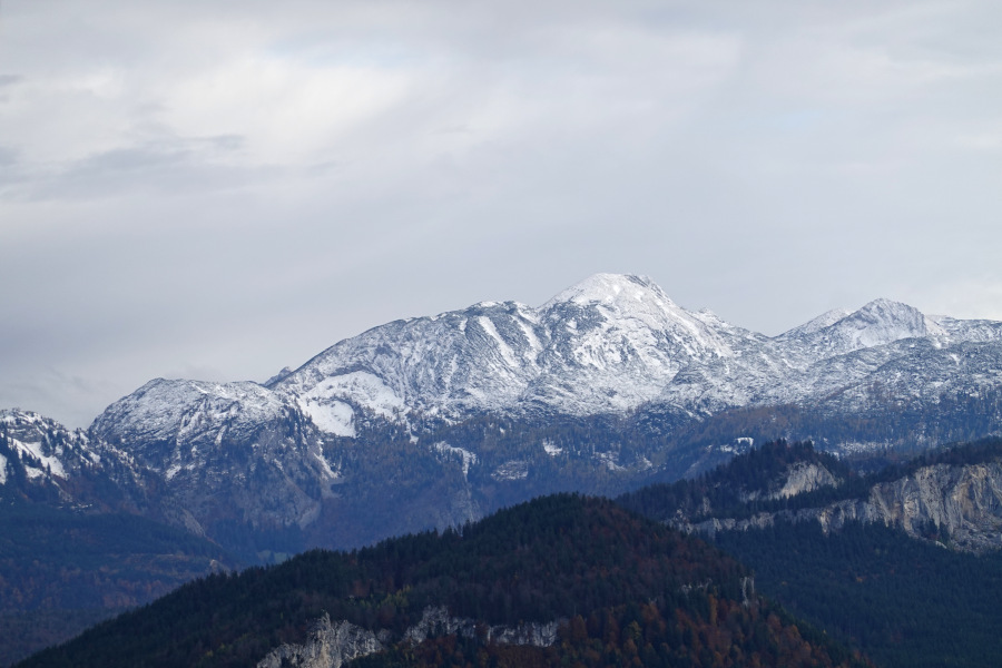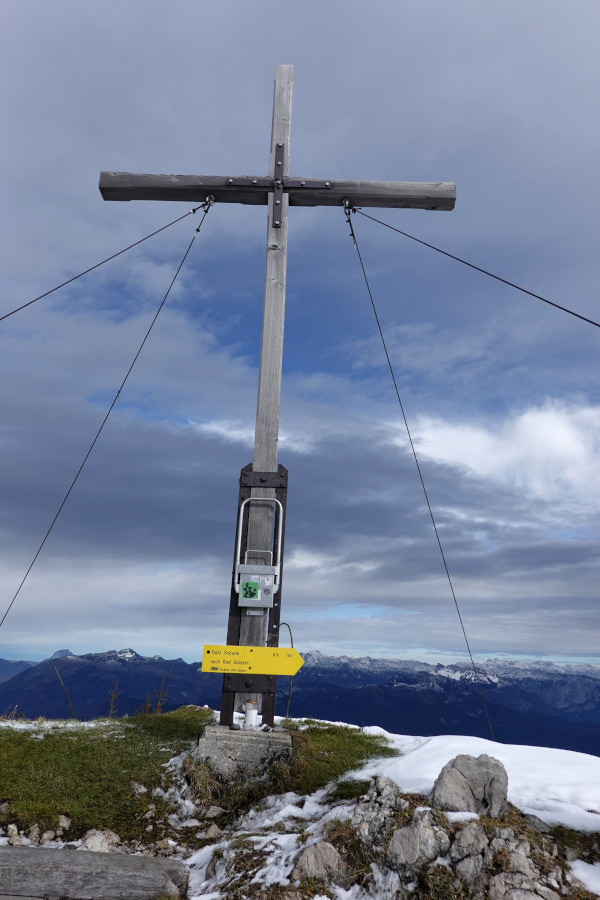 Links vom Bleikogel zeigte sich übrigens der Hochkönig (2941m), aber das musste man wissen und fand ich erst beim Beschriften zuhause heraus. Links vom Tennengebirge außerdem das Kitzsteinhorn (3203m) – Csaba hats vor Ort erkannt.