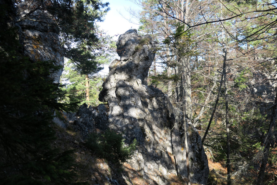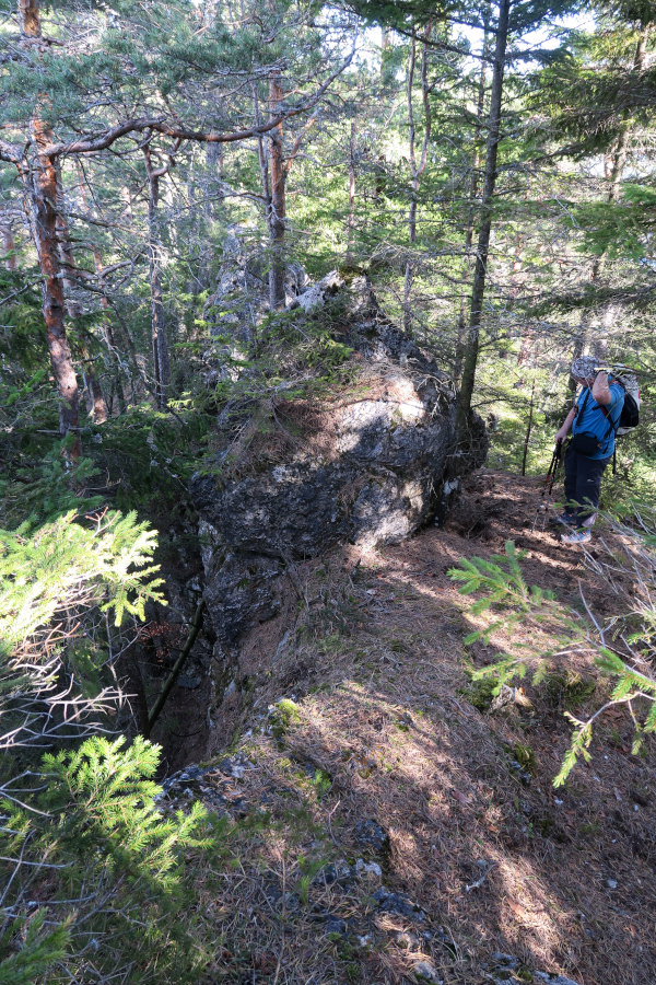 Dann wurde der Weg vorübergehend deutlich anspruchsvoller, denn ein paar Felsnadeln am schmalen Felskamm mussten (rechts) umgangen werden.