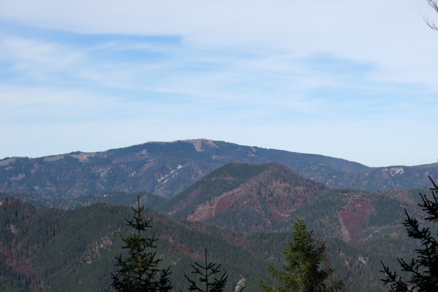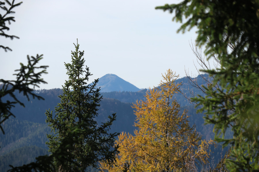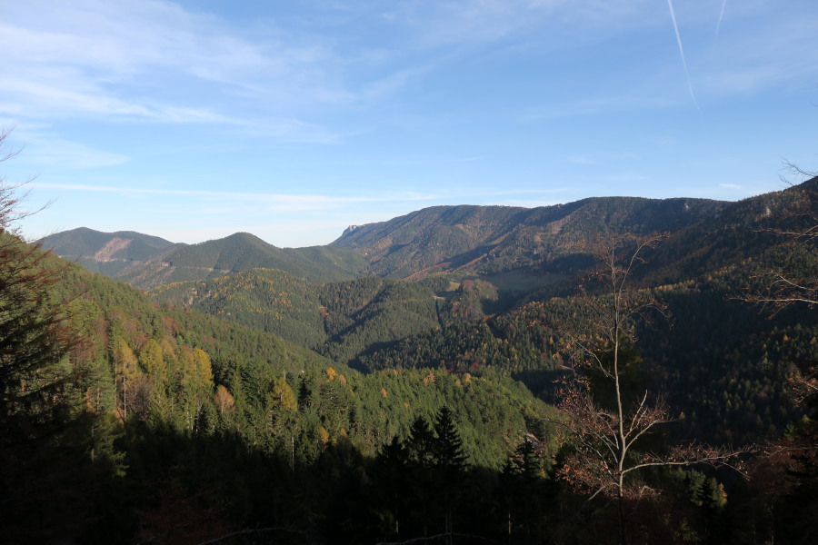 Dann hatten wir den teilweise lichten Gipfelhang des Nebelsteins erreicht. Etwas unterhalb vom Gipfel noch im Aufstieg bot sich ein prächtiger Blick zu den Ybbstaler und Türnitzer Alpen.