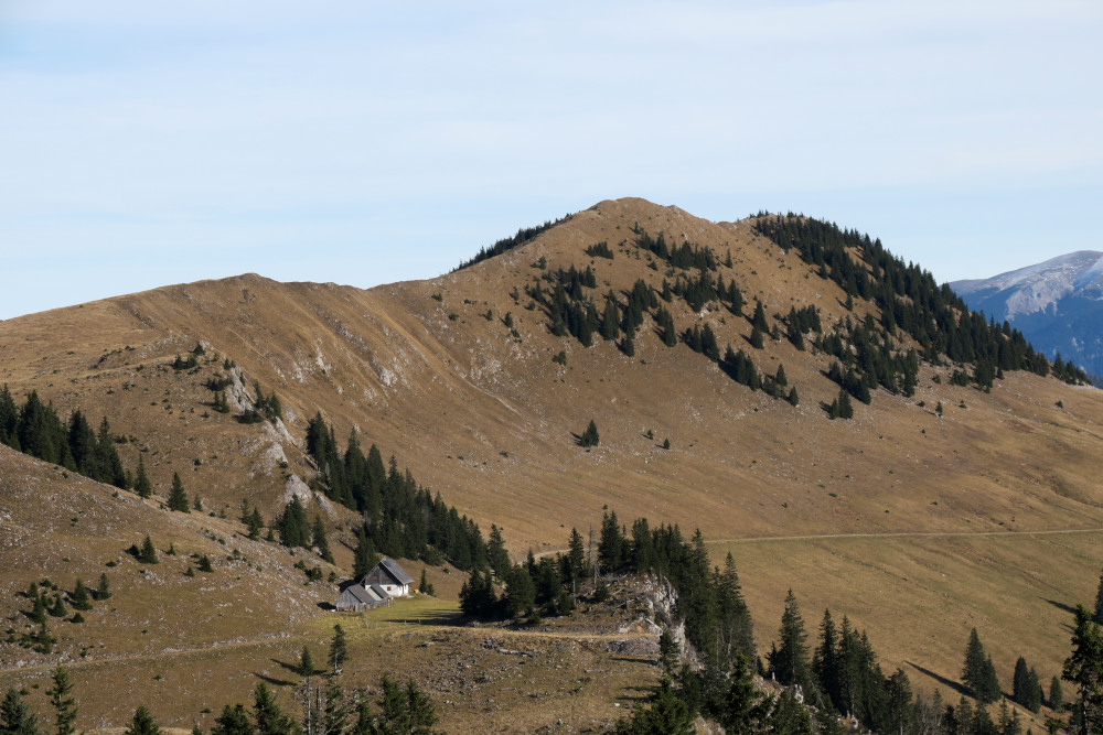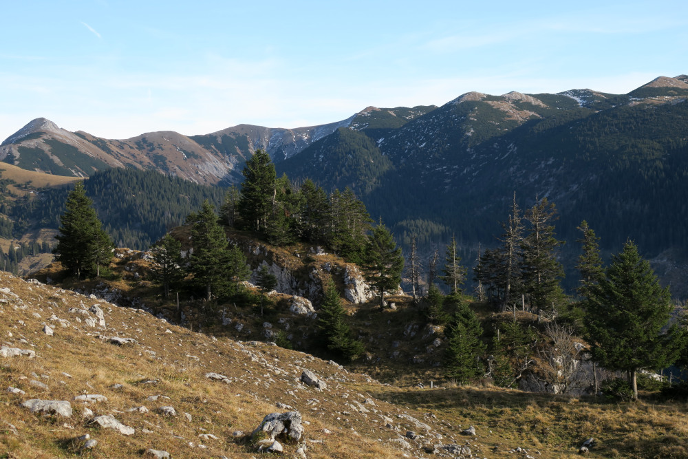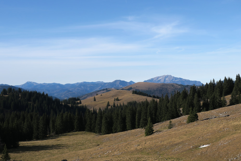 Nach exakt zwei Stunden Gehzeit erreichten wir die Hinteralm und das Panorama Richtung Westen und Süden weitete sich.