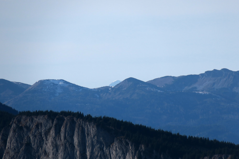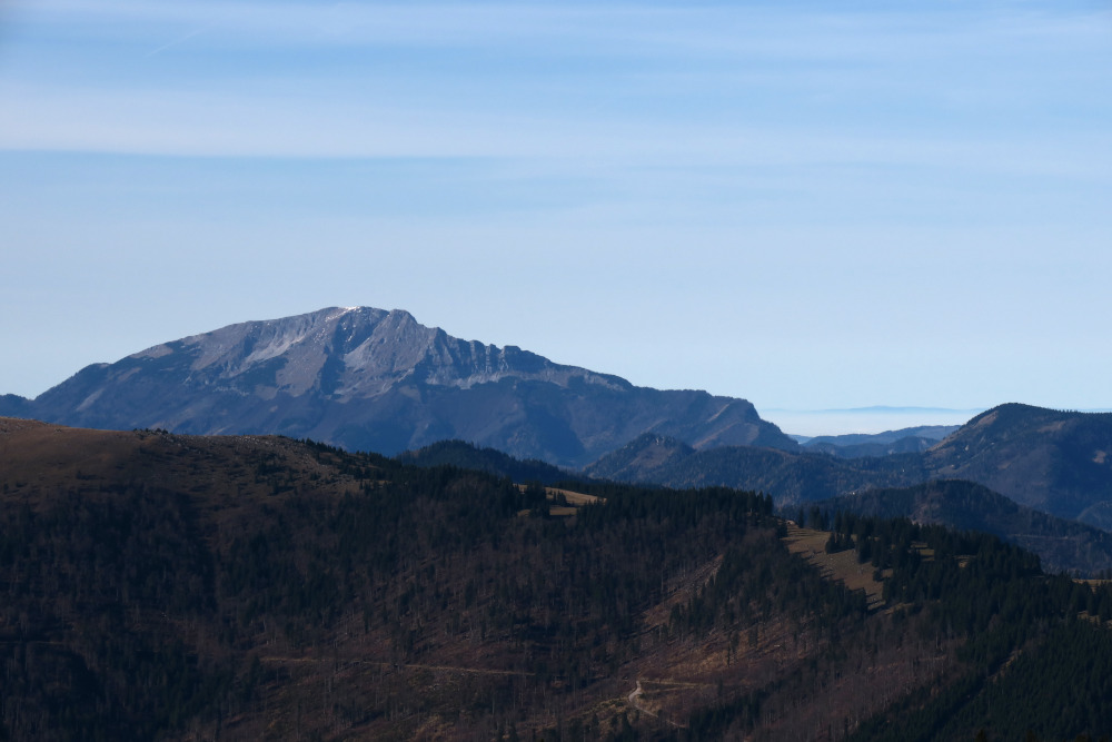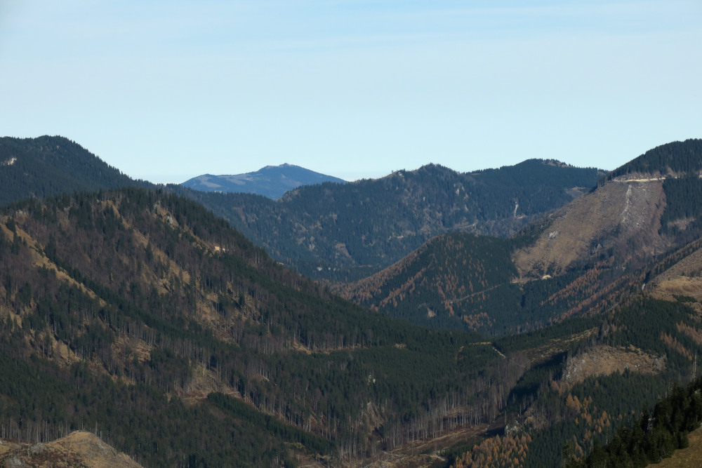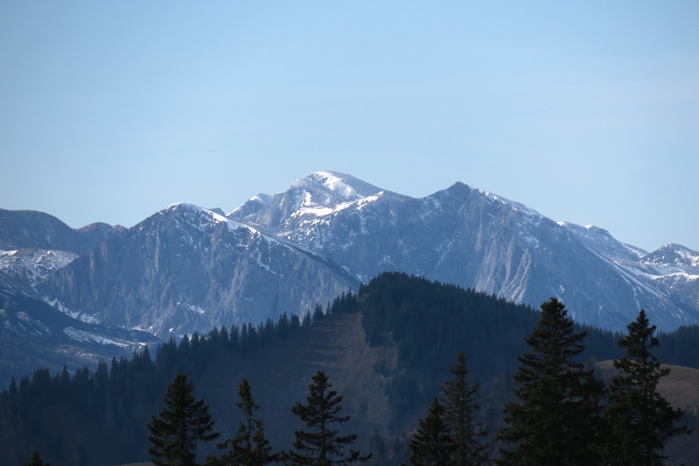 Nach etwas mehr als drei Stunden Gehzeit standen wir am Spielkogel (1599m) bei angenehmer Wärme und nahezu perfekter Sicht. Lediglich Richtung Südwesten machte sich der zunehmende Saharastaub mit Dunst bemerkbar, denn die rekordwarme Luft kam direkt aus Nordafrika.