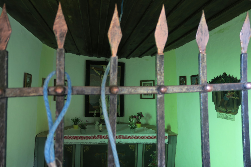 Der direkte weglose Gipfelanstieg zum Hochalpl (früher: Hochaibel) ist seit dem September 2024 nicht mehr möglich. Zahlreiche Bäume wurden dabei vollständig aus der Erde gehoben. Wir querten daher den steilen Wiesenhang und stiegen von Süden auf den bewaldeten Gipfel. Bei einem älteren Hochstand hatte man einen Durchgucker zum Hochschwab und zu einem Gesäusegipfel.
