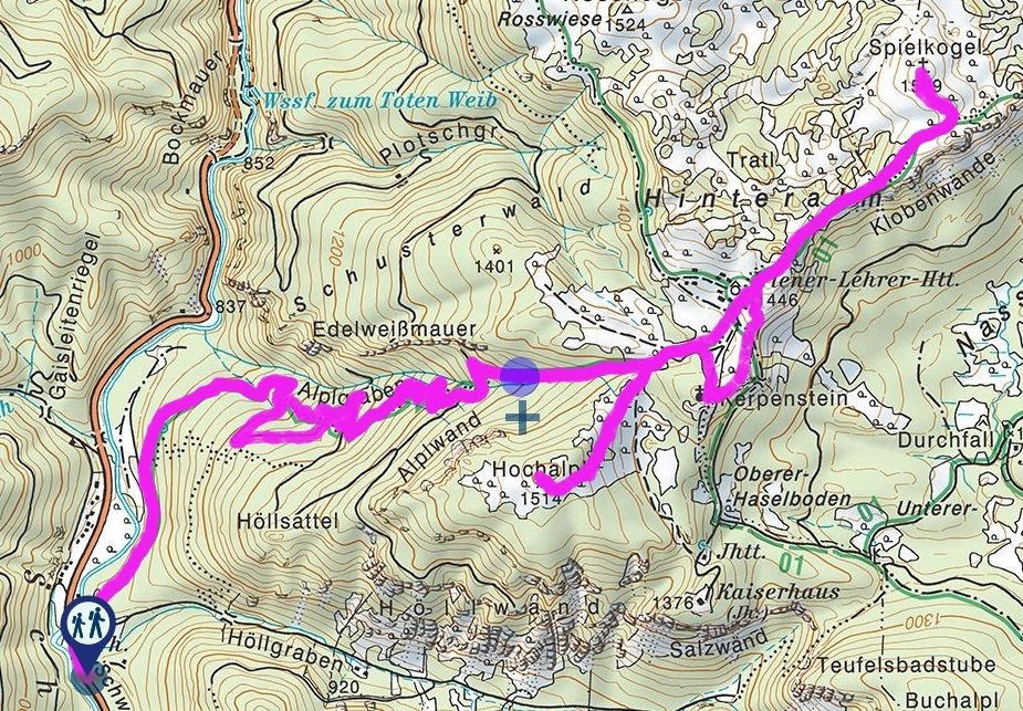 Der Parkplatz ist zwar in der Open Street Map eingezeichnet, aber ohne Parken-Schild ausgewiesen, sodass wir beim ersten Mal daran vorbeifuhren. Von dort ein kurzes Stück entlang der Bundesstraße über eine Brücke und dann beim Haus der Bundesforste am Ausgang des Höllgrabens rechts. Der (unmarkierte) Höllgraben selbst ist die Hälfte des Jahres für die Jäger gesperrt (November bis Juni).