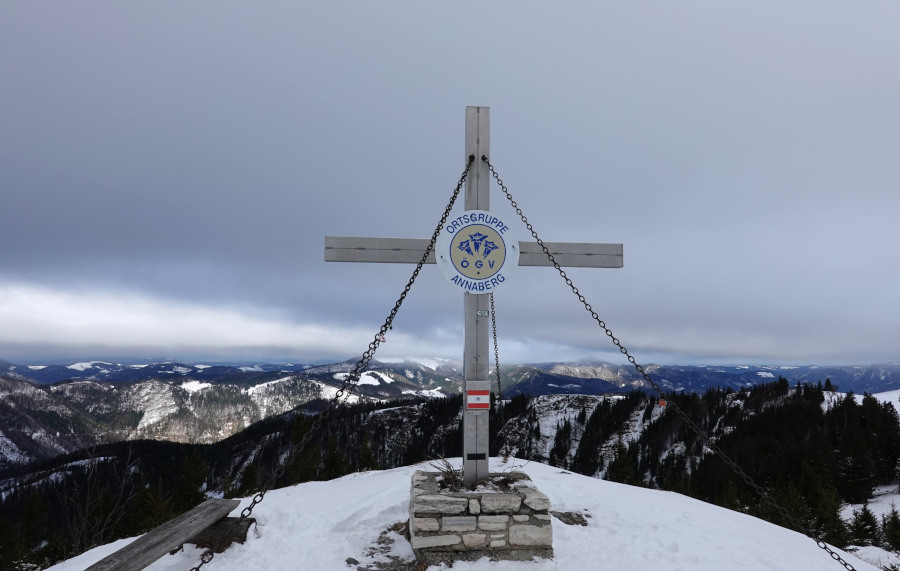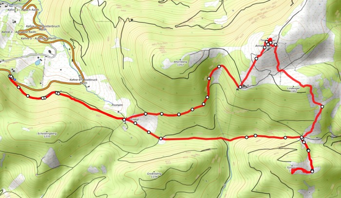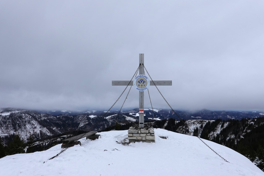 Route: Annaberg (Parkplatz, 10.40) – Gscheid (11.08) – Tirolerkogel (1380m, 12.05-13.25) – Lindkogel – Törlstein (1186m, 14.25-14.35) – Annaberg (Parkplatz, 15.38)