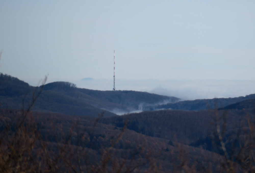 Die einzelnen sichtbaren Gipfel der Kleinen Karpaten waren möglicherweise durch die Temperaturinversion und Luftspiegelung (Fata Morgana) etwas nach oben verzerrt, weil normalerweise nicht so rund bzw. breit.