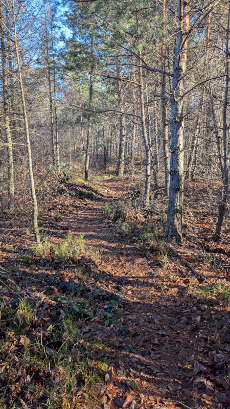 Im unteren Teil wurde das Gelände immer abschüssiger und war im Schatten extrem vergatscht. Zudem lagen noch einige Bäume samt umgerissener Wurzel vom September 2024 quer über den Weg, die man bisher anscheinend nicht beseitigen wollte.