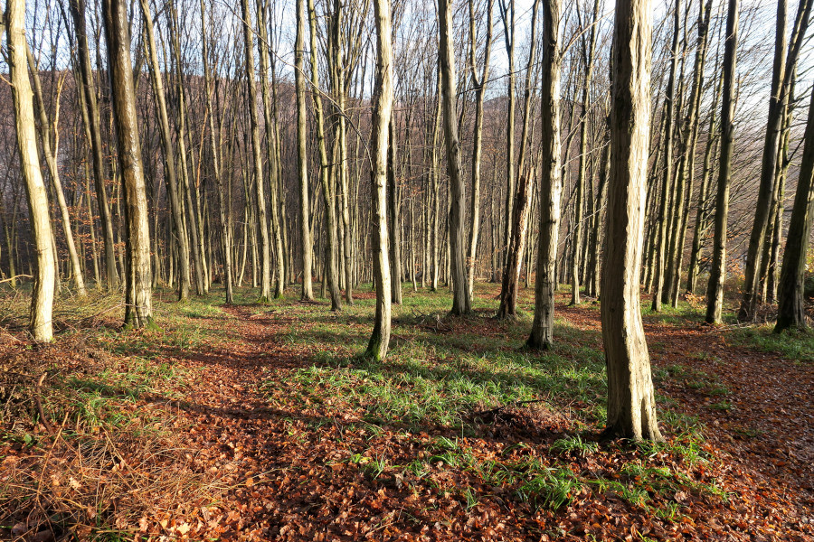 Oben traf ich naturgemäß niemanden (unter der Woche) und befand mich bereits im Anstieg zum Troppberg, als sich der erste Ausblick bot: