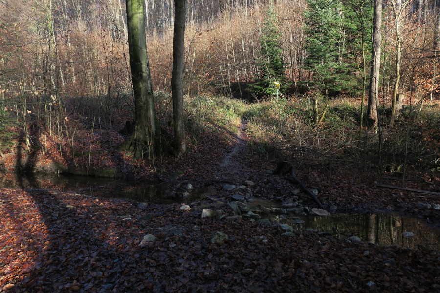 Das erste Stück kannte ich noch vom November 2021, als ich über den Sagberg Richtung Troppberg stieg, aber keine gute Fernsicht hatte. Dieses Mal ging ich an der Sagbergsiedlung vorbei und am markierten Weg ins Tal des Großen Steinbachs.