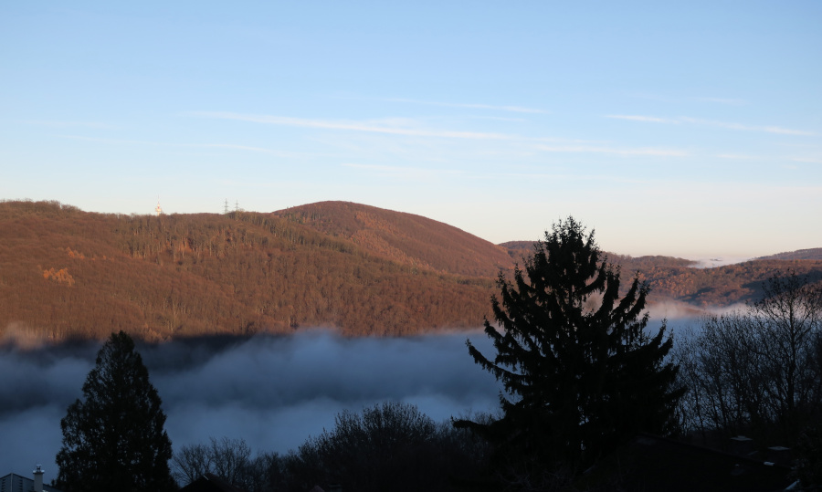 Über die Straße stieg ich in den Nebel in Vorderhainbach ab. Nochmal ein beeindruckendes Erlebnis, mit welcher Geschwindigkeit der Nebel das Tal hinaufströmte. Ein Zeitraffer hätte sich gelohnt.