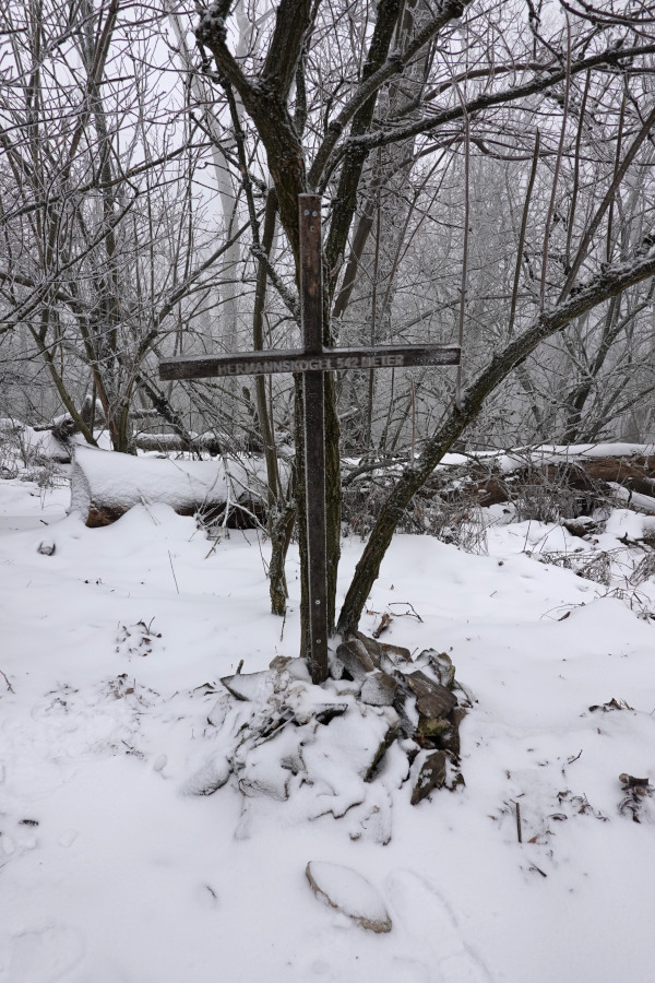 Die angegebene Höhe ist nicht richtig. Die 542m gelten nur für die Habsburgwarte, das Gipfelkreuz ist am höchsten Punkt auf 544m. Ab dem Hermannskogel geriet ich nicht nur kurzzeitig in den Nebel, sondern auch in merklich kältere, also deutlich frostigere Luft.