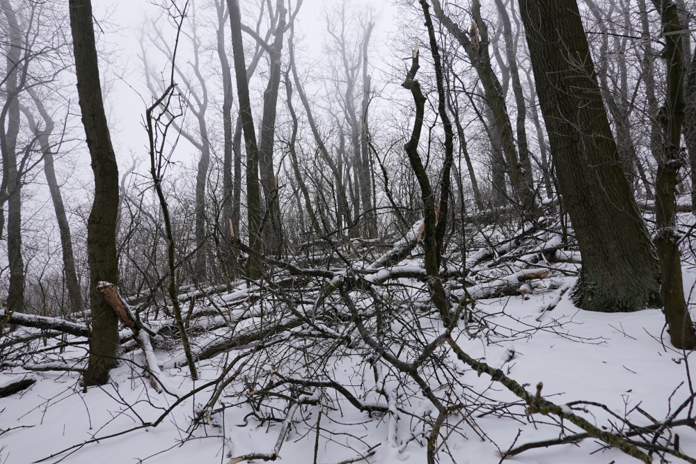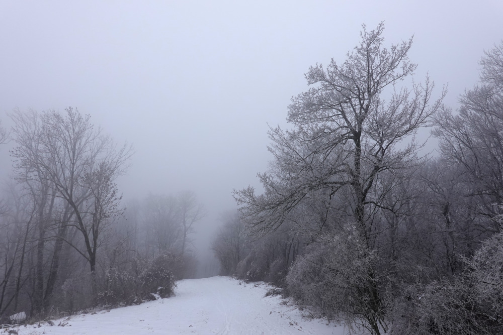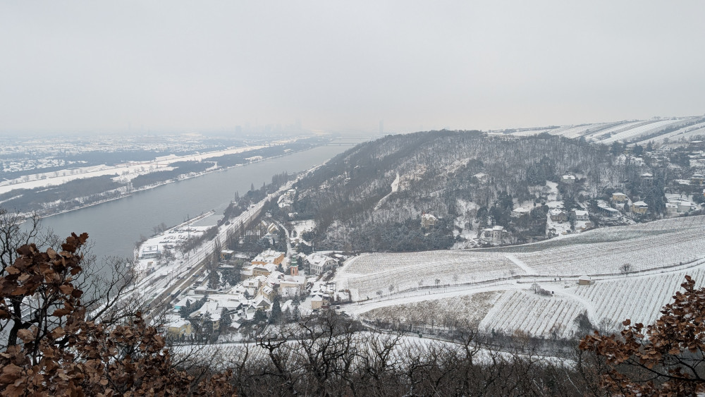 Beim Kahlenberg fielen kurzzeitig Eiskörner, die Warmluft in der Höhe war bedrohlich nah. Dafür könnte ich die Handschuhe endlich ausziehen.