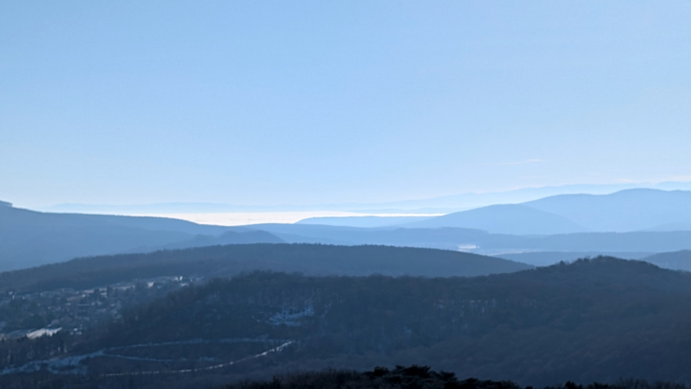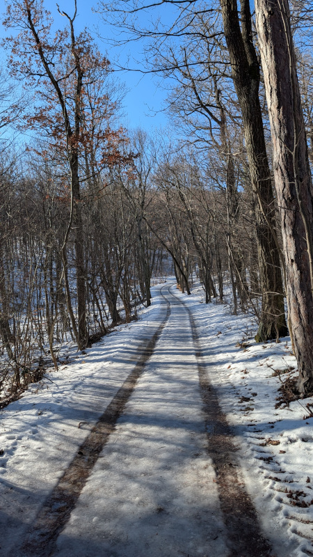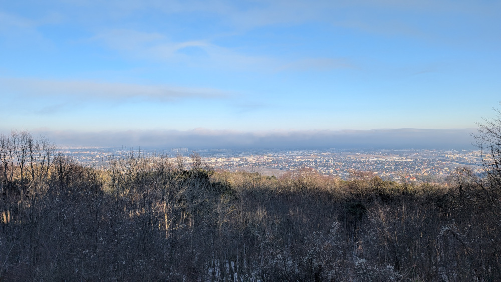 Eigentlich wollte ich Rad fahren (die im Herbst gekaufte Winter-Radhose wartet auf ihren ersten Einsatz), aber entschied mich angesichts deutlicher Plusgrade und Sonnenschein lieber für eine Wanderung statt den kühlenden Fahrtwind. Durch das spontane Entscheiden vergaß ich, die Speicherkarte vom USB-Kabel abzuziehen und in die Kamera einzulegen. Die große Kameratasche hatte ich auch nicht dabei, da lag die Ersatzspeicherkarte. Also schleppte ich die 700g schwere Canon umsonst mit. Entsprechend dieses Mal nur Handyfotos.