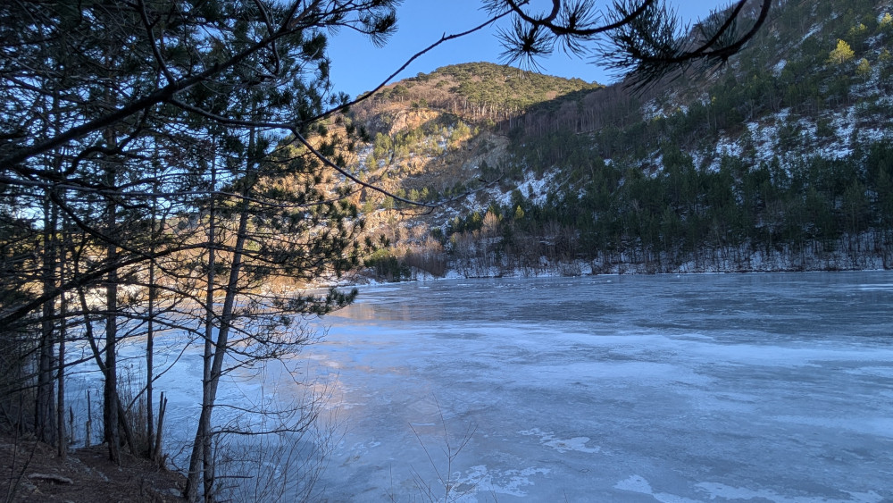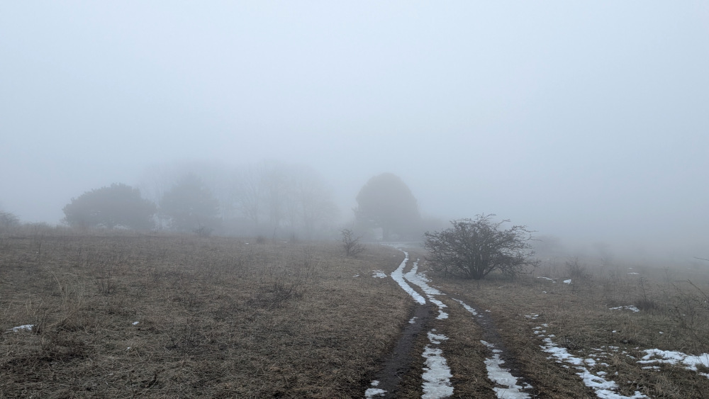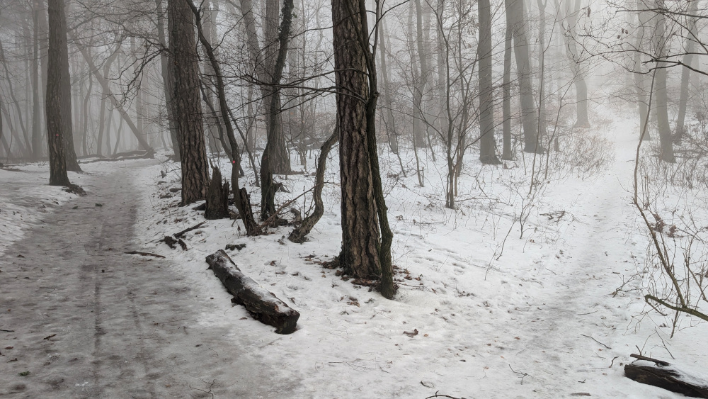 Mit dem einfallenden Nebel gab es vielerorts einen markanten Temperaturrückgang um 5 Grad und mehr. Mein Höhenmeterdurst war noch nicht gestillt. Zudem verwendete ich das erste Mal einen Herzfrequenz-Brustgurt und wollte weitere Daten sammeln. Ein Freund hatte davor schon Bilder vom Abstieg zum Steinbruchsee geschickt mit dickem Eispanzer und das wollte ich mir selbst anschauen. Gesagt, getan.