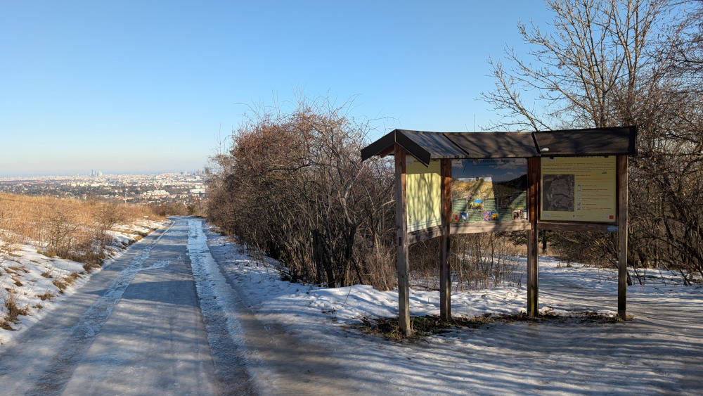 Ich folgte der vereisten Höhenstraße bis zu einer Kehre, wo der Steig Richtung Saugraben abzweigt. In der Kehre stand ein junger Vater mit Straßenschuhen und Kinderwagen. Seine Frau schon weiter oben. Er schob den Kinderwagen hinauf und rutschte dabei gelegentlich weg. Ich schüttelte den Kopf über so viel Gedankenlosigkeit.
