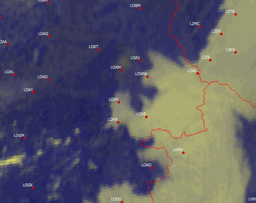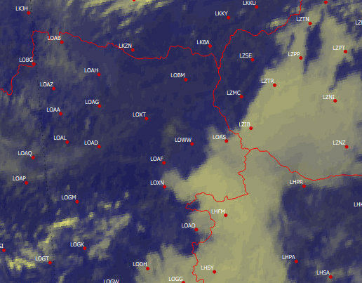 Der Nebel war inzwischen bis Bad Vöslau (Flugplatz LOAV) vorgedrungen und hatte auch Wien schon von Osten erreicht.