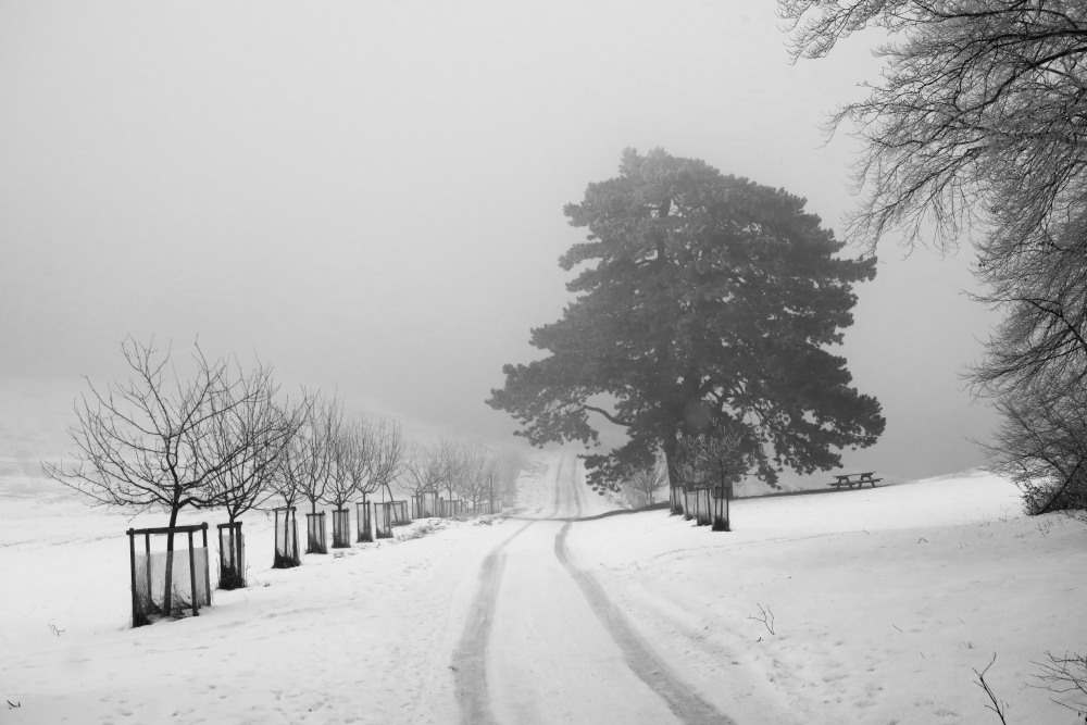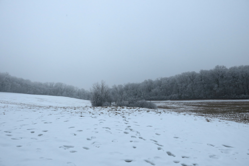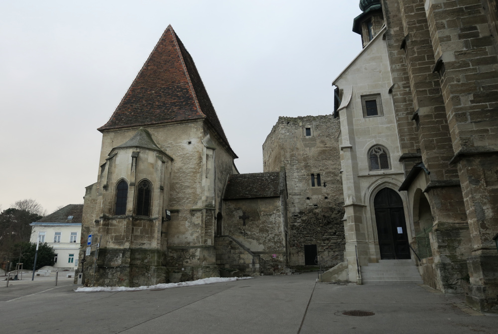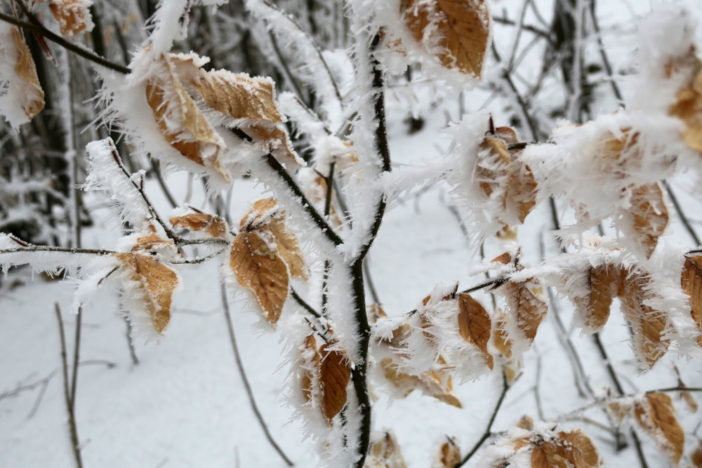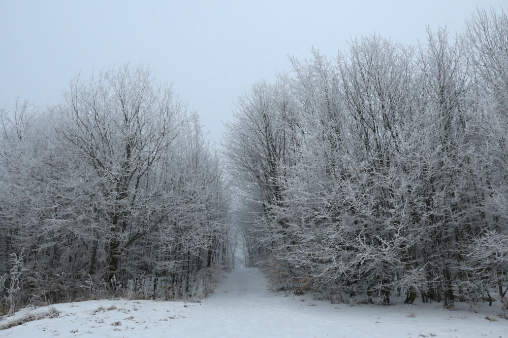 Ab etwa 450m Höhe lag eine dünne Neuschneedecke. Spikes hätte man jetzt nicht mehr gebraucht, aber ich traute mich nicht, sie auszuziehen. Richtung Perchtoldsdorf sollte es wieder eisiger werden.