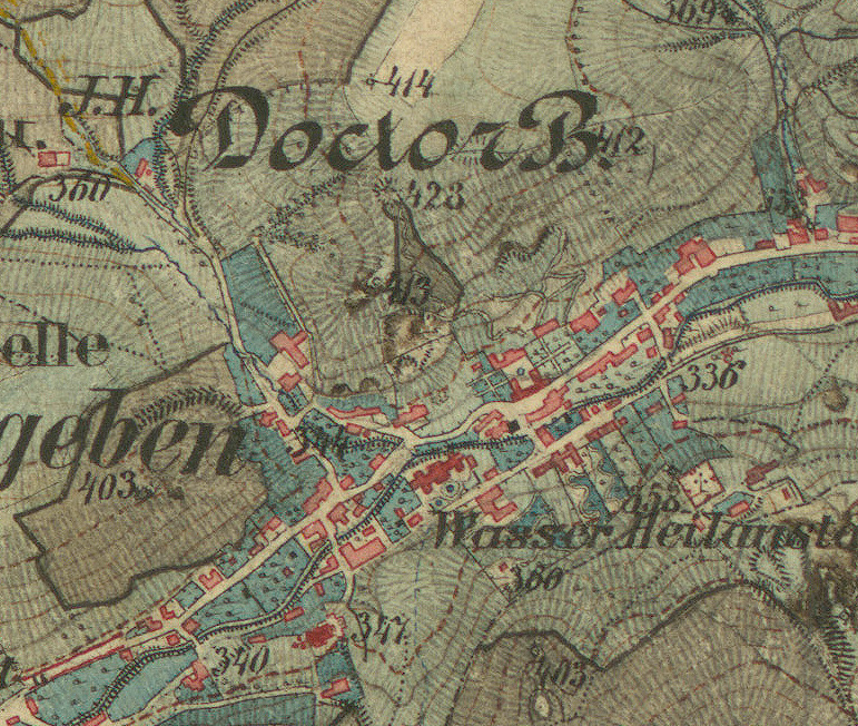 Laut einer älteren Karte befanden sich am Fuß des „Doctorbergs“ kleinere Steinbrüche mit kurzen Zufahrtswegen. Das Mauerwerk konnte also durchaus über hundert Jahre alt sein.