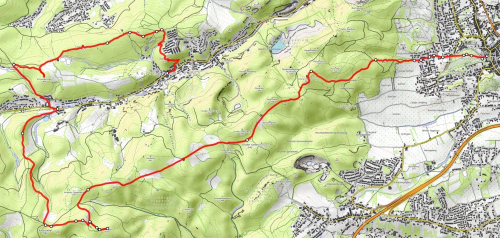Wegführung: Kaltenleutgeben Gemeindeamt (10.10) – Doktorberg (430m) – Lattermaißberg (452m) – Schneiderkogel (464m) – Norwegerwiese – namenloser 643m – Höllensteinhaus (12.43-13.15) – Josefswarte (582m) – Evelynkogel (406m) -Begrischpark – Perchtoldsdorf (15.15)