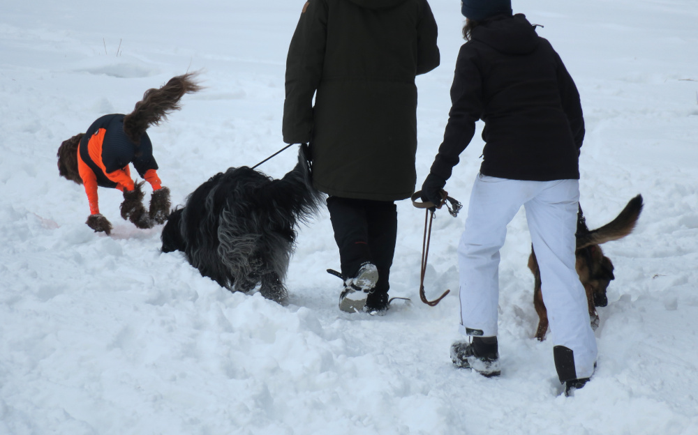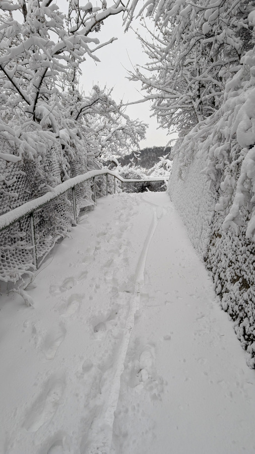 Vom Busparkplatz kam eine alte Frau entgegen, die einen Lachanfall bekam, als sie mich mit Schneeschuhen sah.
