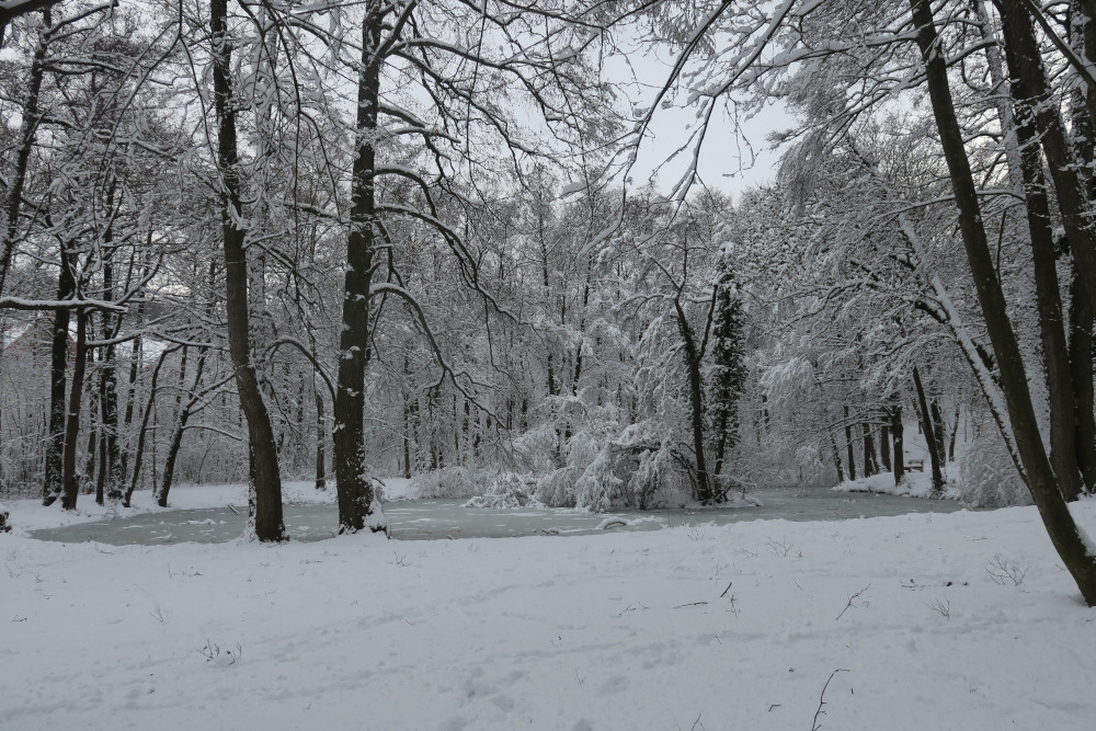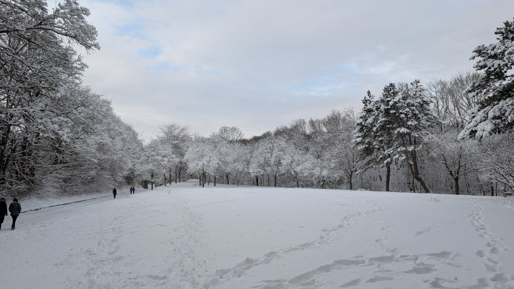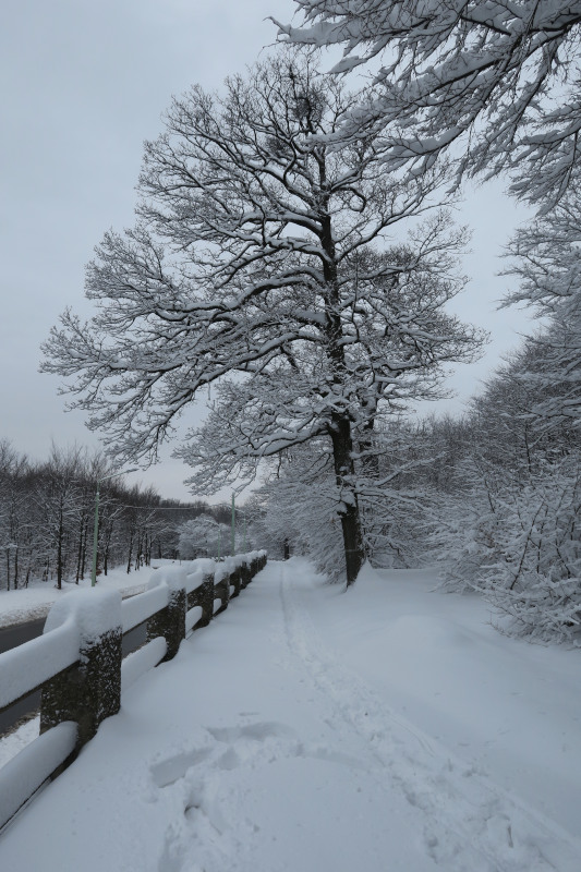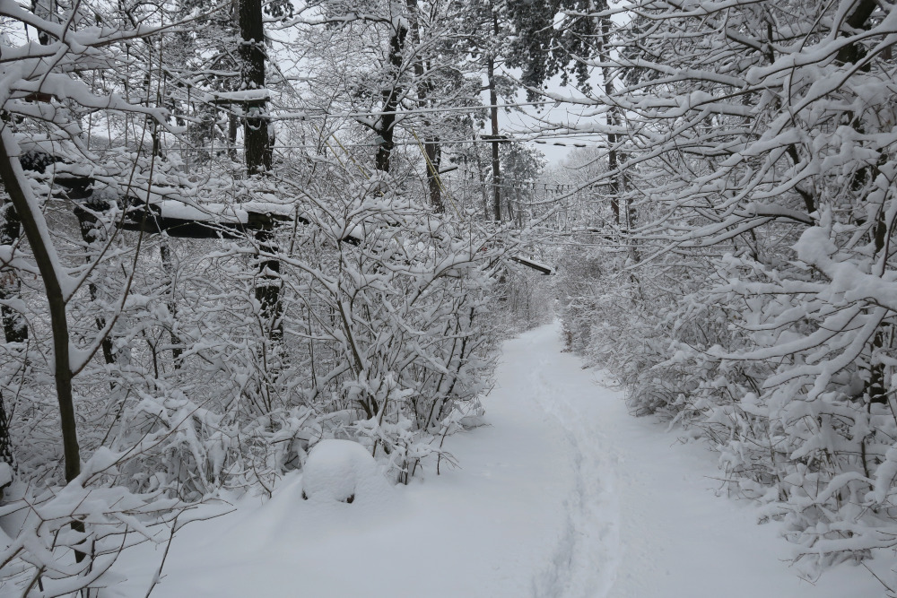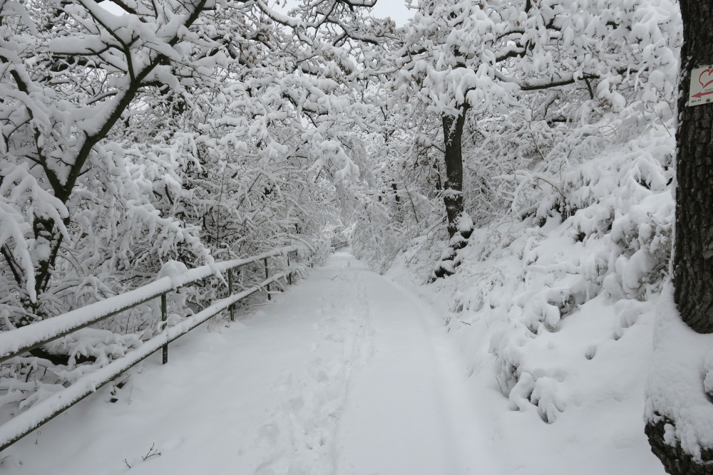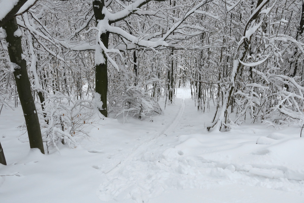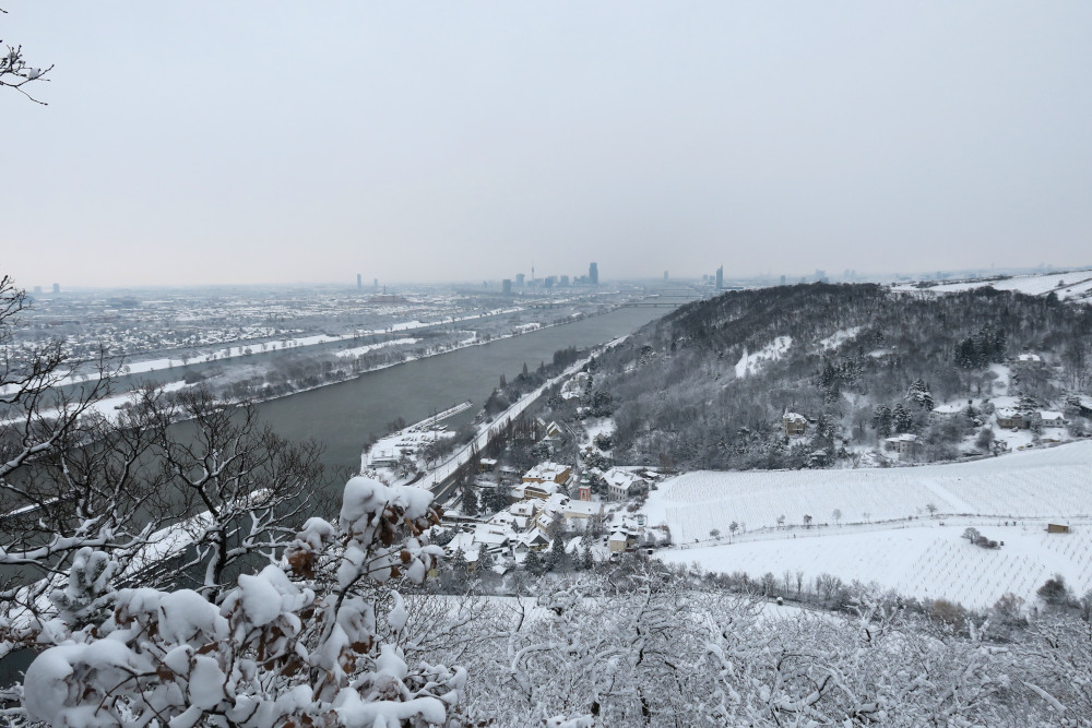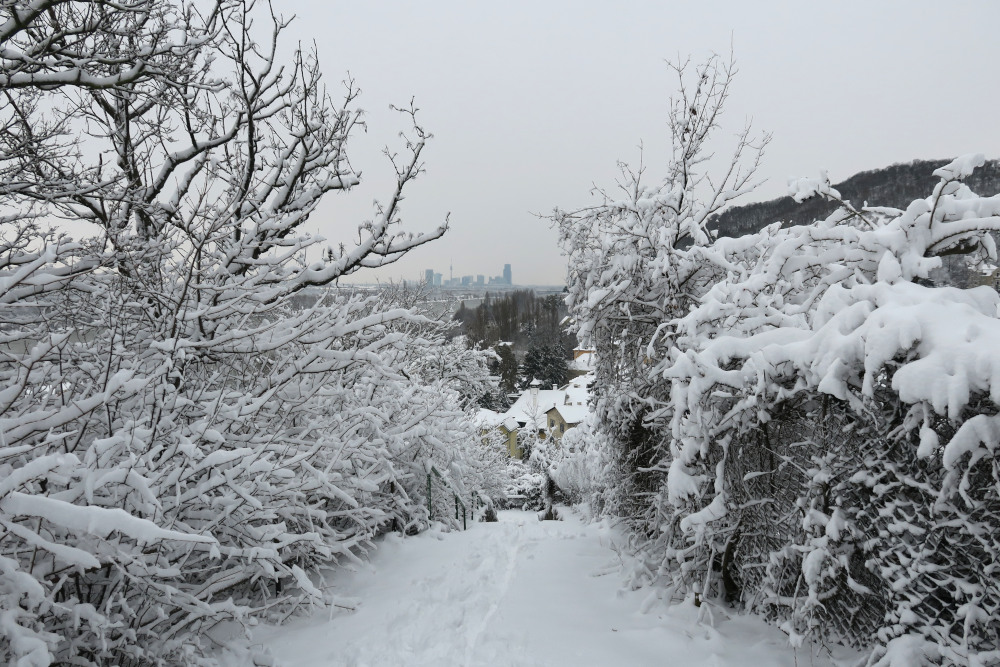 Am Vortag und selbst in der Früh überlegte ich noch, ob ich es wagen sollte, nach Gumpoldskirchen (Anninger) oder ins Helenental (Hoher Lindkogel) zu fahren, entschied mich wegen der vielen Zugausfälle dann aber dagegen. Angesichts der Neuschneemengen konnte ich es wagen, mit kurzer Anfahrt direkt in Döbling zu starten. Damit war diese Tour für mich eine Premiere: Erstmals auf Wiener Boden mit Schneeschuhen unterwegs! Im Verlauf der Wanderung stieg die Lufttemperatur auch in den höheren Wienerwaldlagen knapp ins Plus. Die diffuse Strahlung bewirkte ein Anfeuchten und Setzen der Schneedecke.