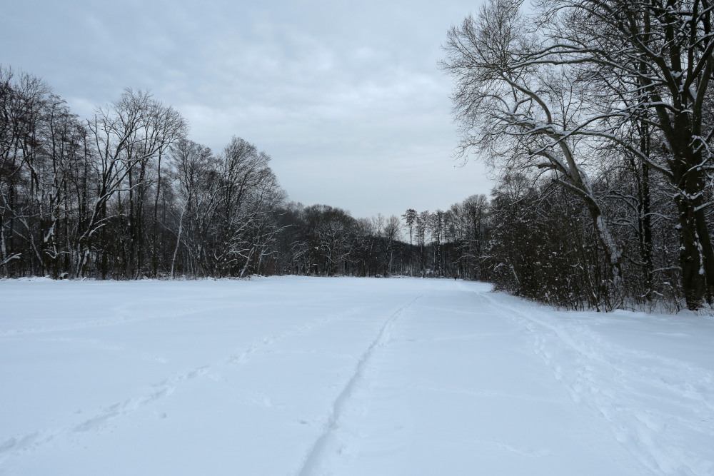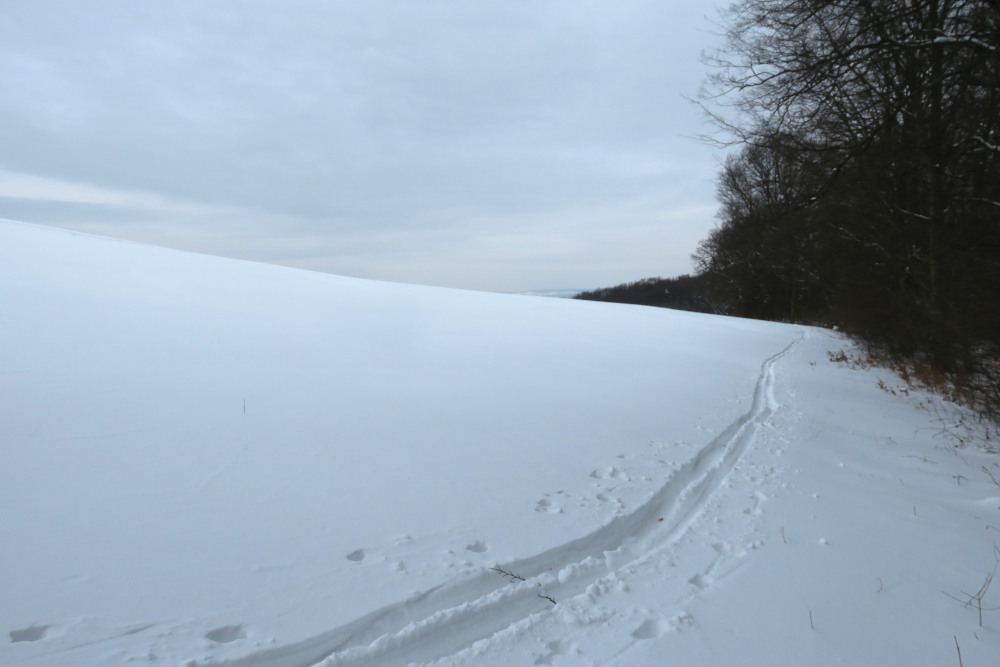 Ich schaute auf die Uhr, es war erst viertel zwei vorbei. So schnell wollte ich noch nicht absteigen. Zugleich waren die Beine schon etwas müde vom vielen Spuren Es gab zwischendrin auch Traktorspuren, aber meist spurte ich zu Trainingszwecken lieber selbst. Deswegen hatte ich sie ja an den Füßen. Also stieg ich nicht wie sonst vom Dreimarkstein nach Obersievering ab, sondern ging am Kamm weiter.