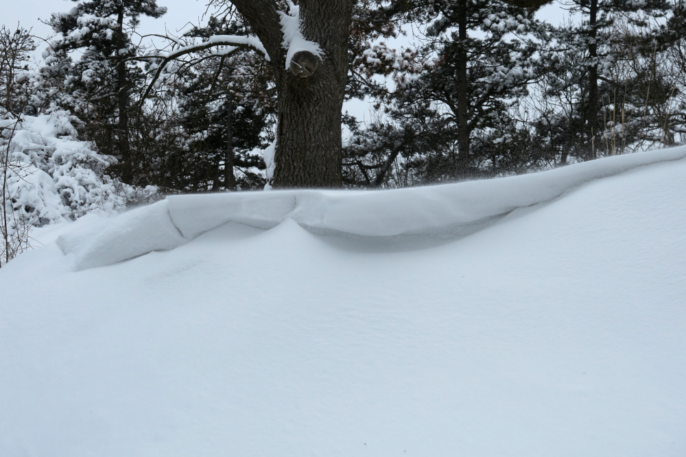 Der Aufstieg zur Plattform war mit tiefen Schneewechten zugeweht. Dort pfeifte der kalte Wind durch.