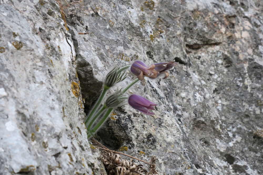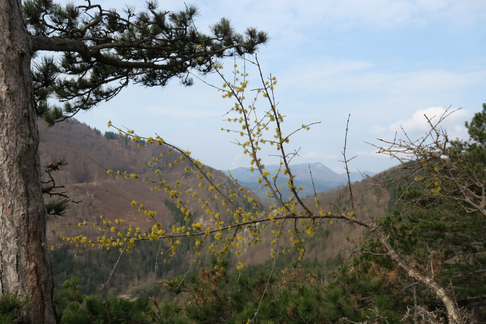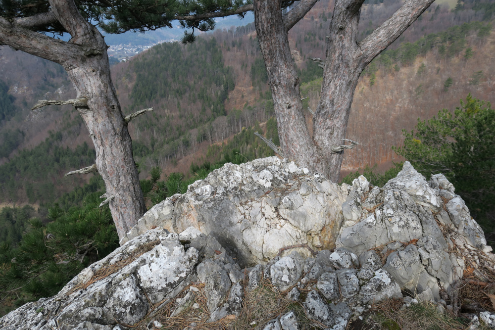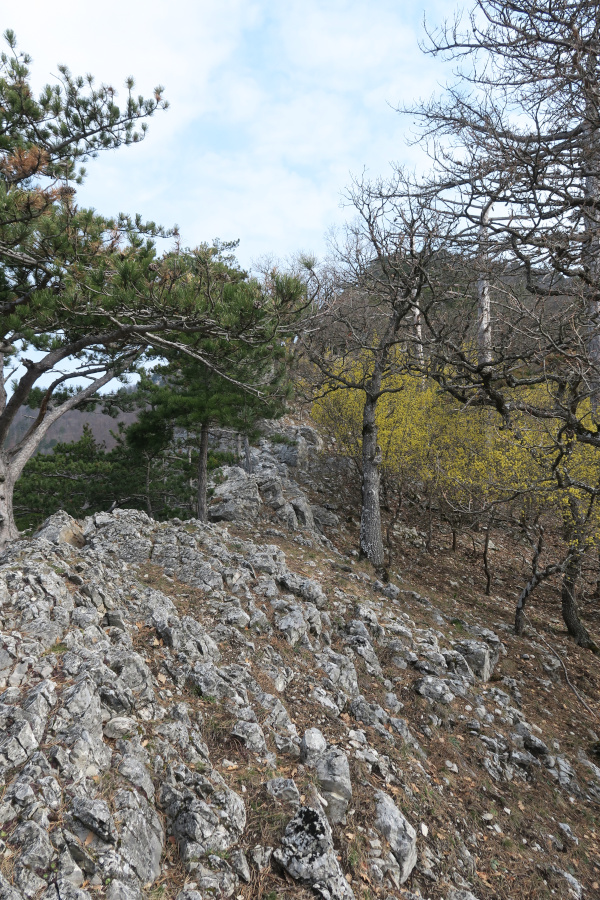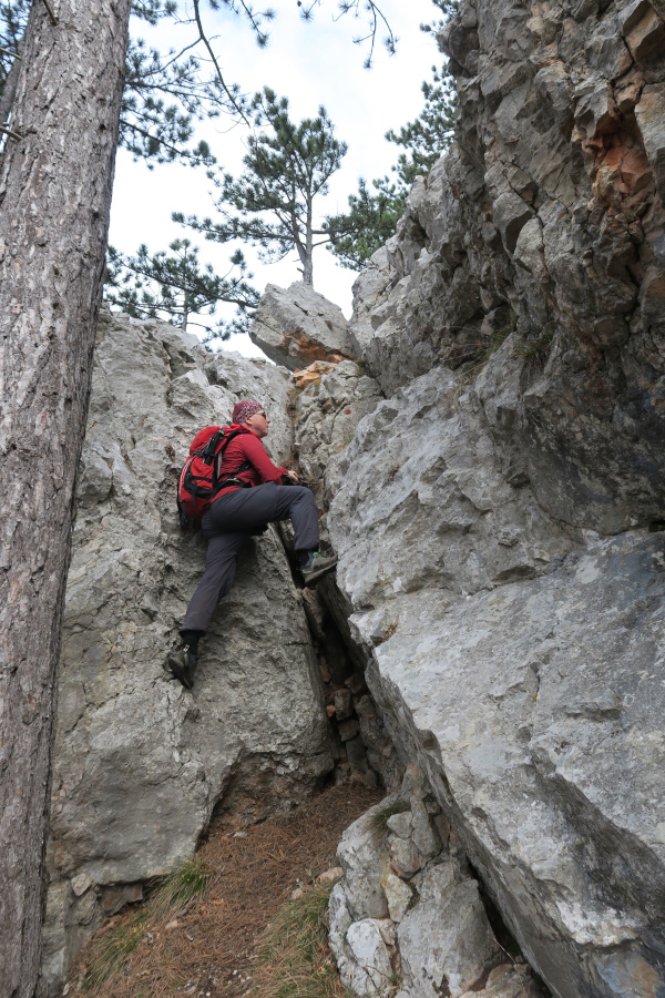 Dort ein paar Meter auf der Straße (bzw. daneben) und beim Haus mit dem Hundegebell rechts einen Forstweg hinauf. Bald standen wir am Beginn des Süßwandgrats oberhalb der „Roten Schale“.