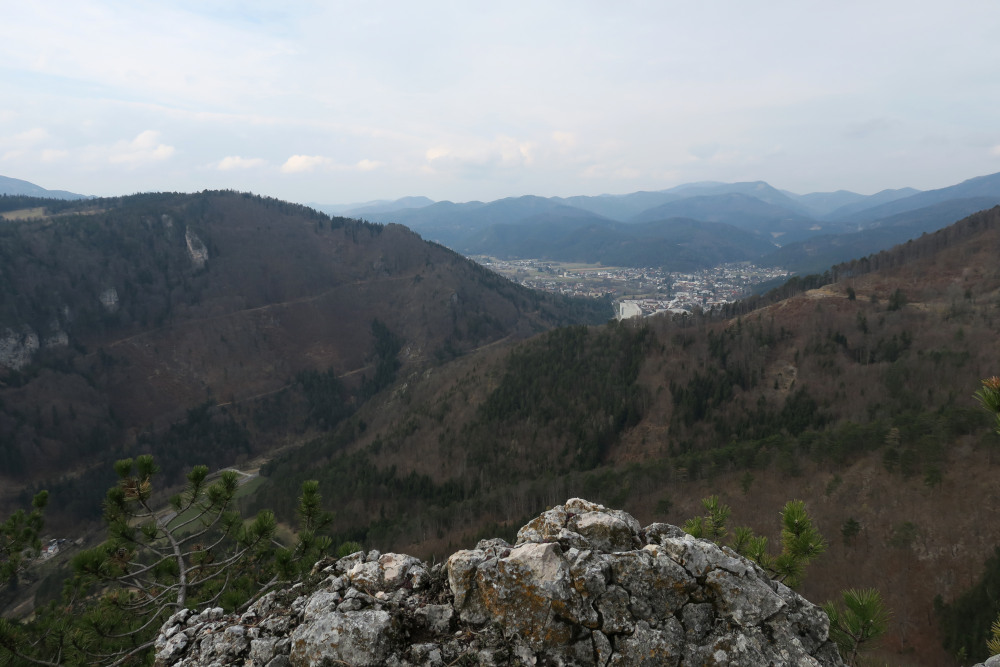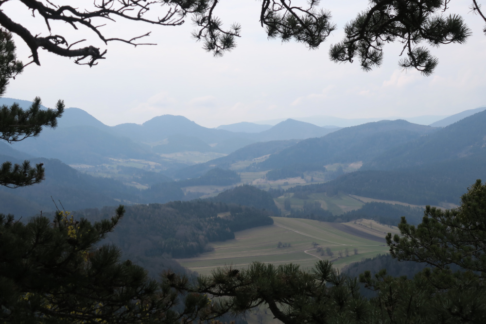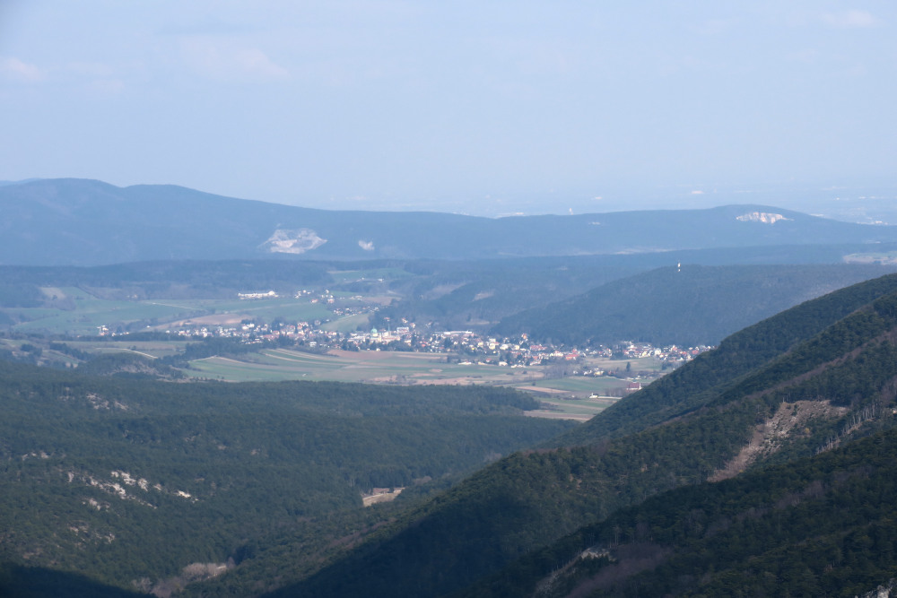 Wir parkten in Peisching nahe dem Gemeindeamt, weil Günter und ich die Vordere Mandling am Rückweg mitnehmen wollten. Norbert fuhr uns weiter bis nach Quarb am Beginn in das enge „Durchbruchstal“ der Piesting zwischen Hohe Mandling und Großem Kitzberg. Der Flurname Quarb ist keltischen Ursprungs (von gwar = Aussicht), vermutlich befand sich hier ein Wachtposten. In dem Gebiet wurde eine Scheibenfibel aus dem 2. Jahrhundert nach Christus gefunden.